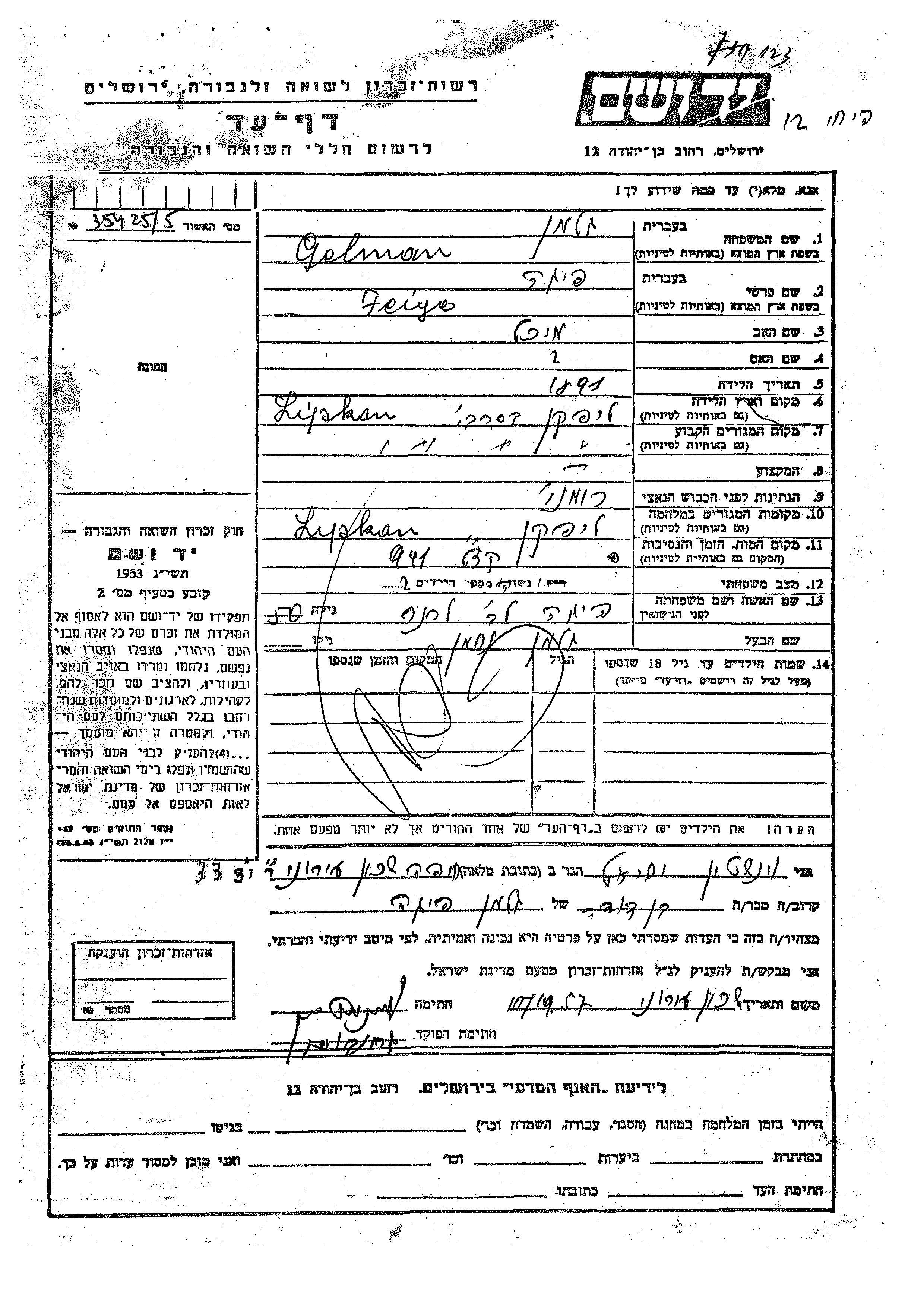 Feiga Gelman, geb. Lerner wurde im Jahr 1891 in Lipkani, Rumänien geboren. Sie war die Tochter von Mikhel. Sie war mit Nakhman Verheiratet. Vor dem Zweiten Weltkrieg lebte sie in Lipkani, Rumänien. Während des Krieges war sie in Lipkani, Rumänien.