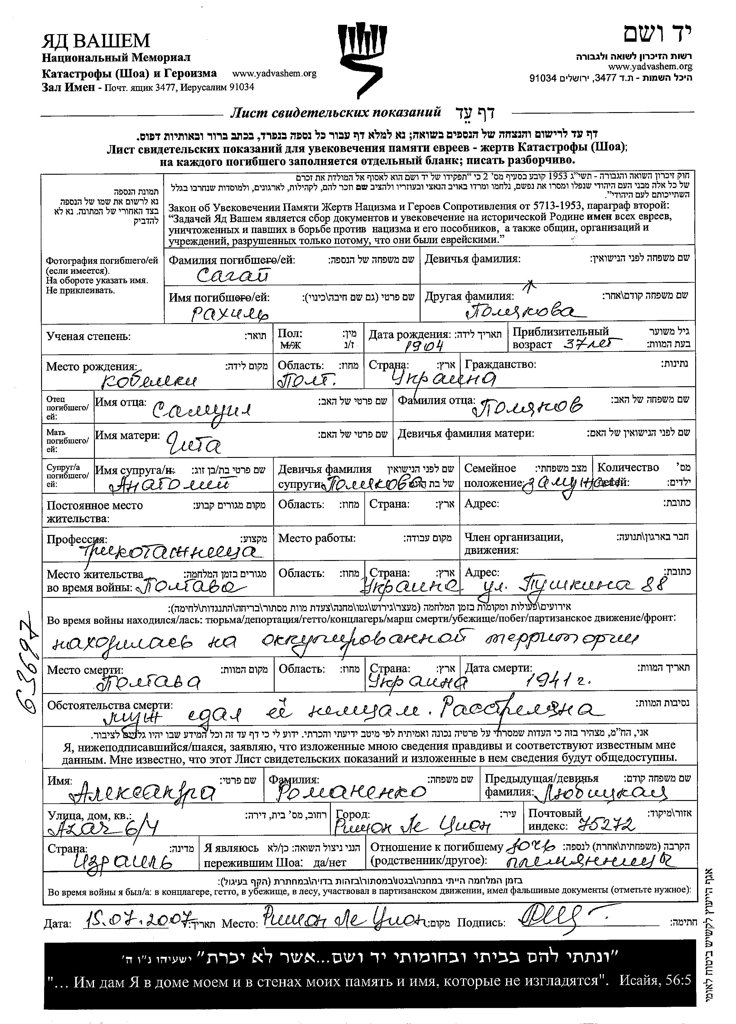 Aufenthaltsort während des Krieges/Schoah