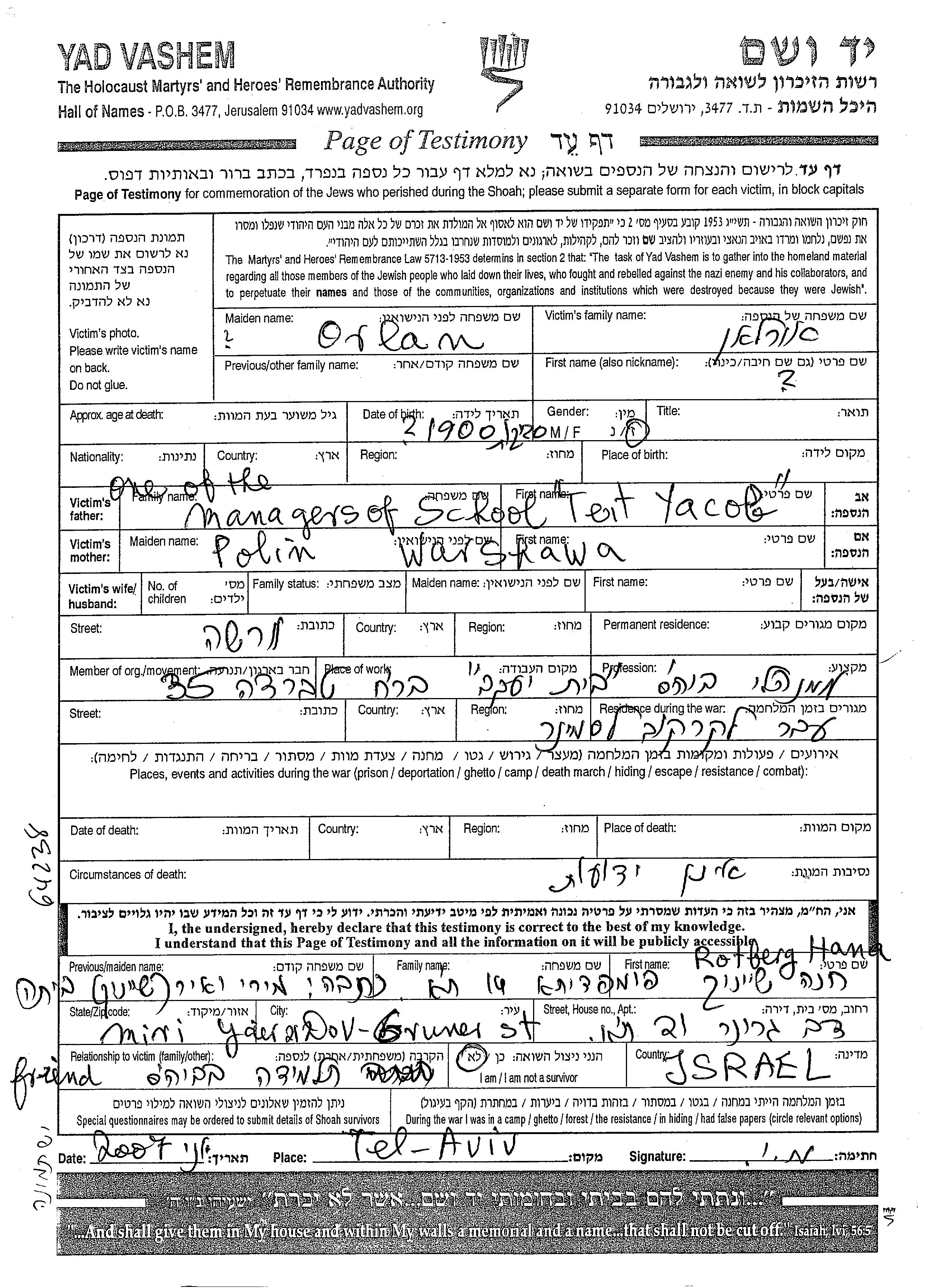 Vorname unbekannt Orlan Orlean wurde im Jahr 1900 in Warszawa, Polen geboren. Er war Leiter einer hebräischen schule. Vor dem Zweiten Weltkrieg lebte er in Warszawa, Polen. Während des Krieges war er in Krakow, Polen.