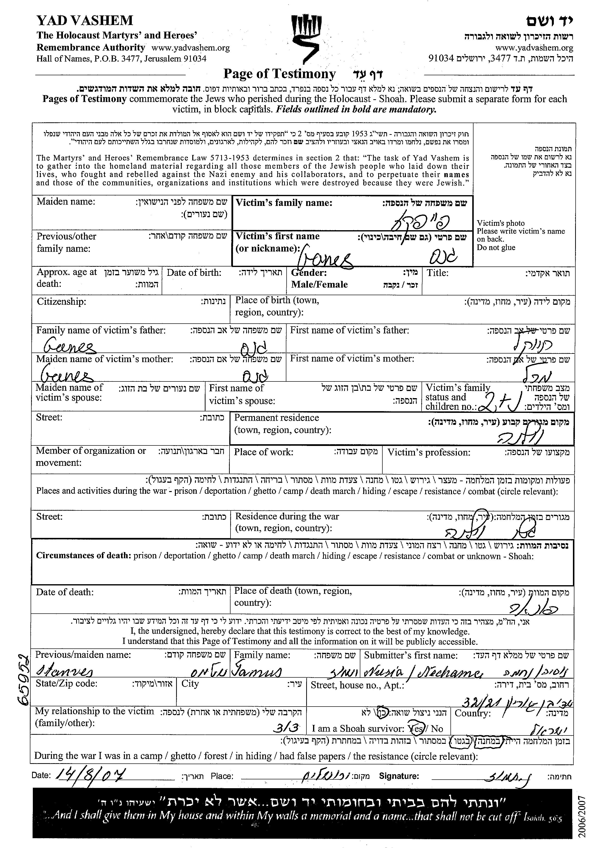 Ganes Feibush Wilno, Polen Gedenkblatt