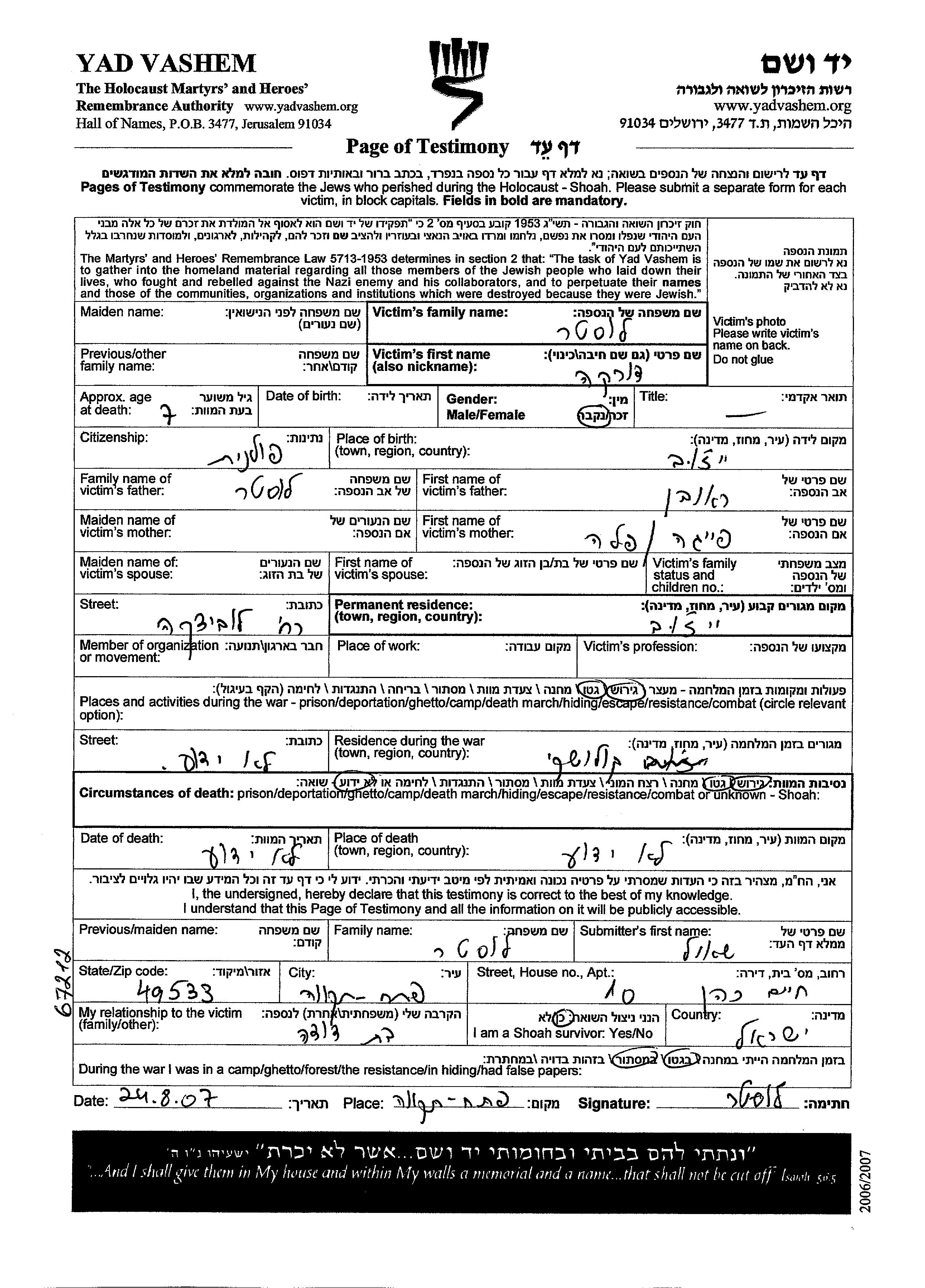Dorka Luster wurde in Jezow, Polen geboren. Sie war die Tochter von Reuven und Feiga Fela. Sie war Kind. Vor dem Zweiten Weltkrieg lebte sie in Jezow, Polen. Während des Krieges war sie in Koluszki, Polen.