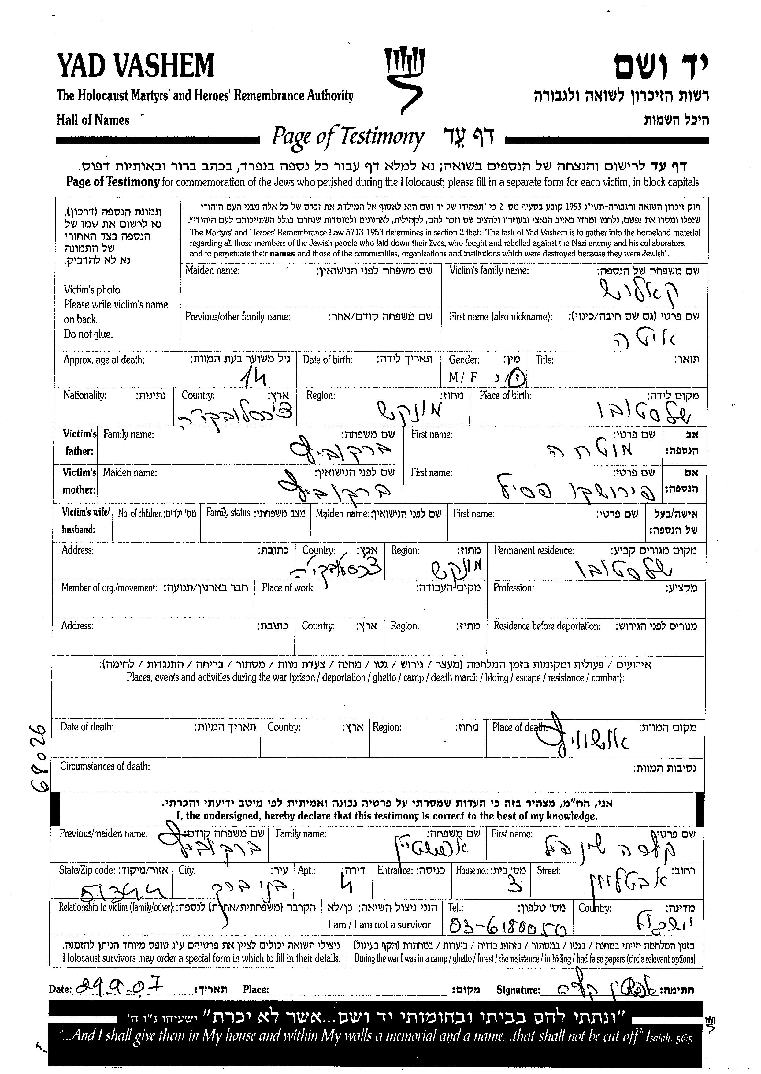 Ita wurde in der Schoah ermordet. Todesort: Auschwitz, Polen.