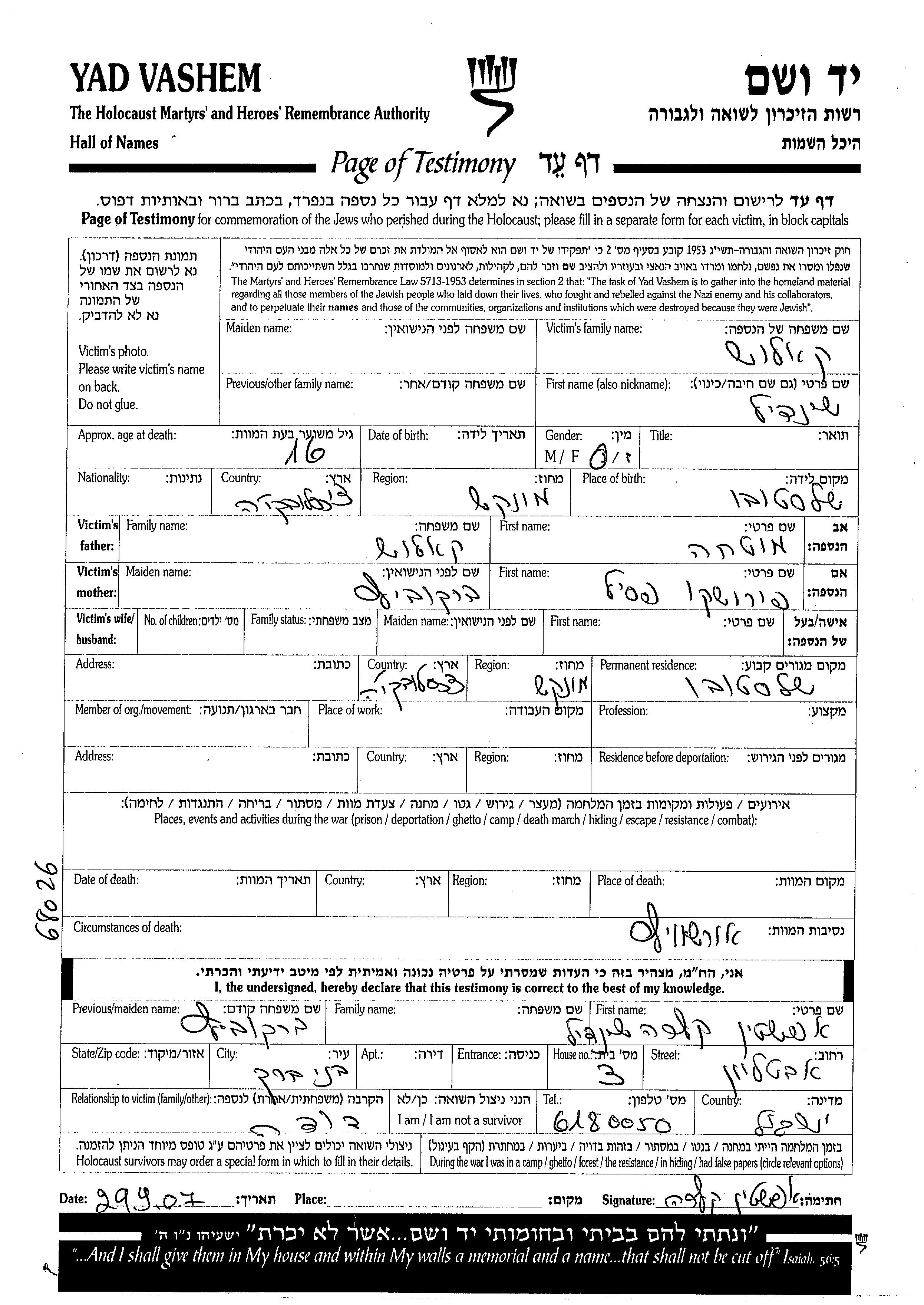 Sheina wurde in der Schoah ermordet. Todesort: Auschwitz, Polen.