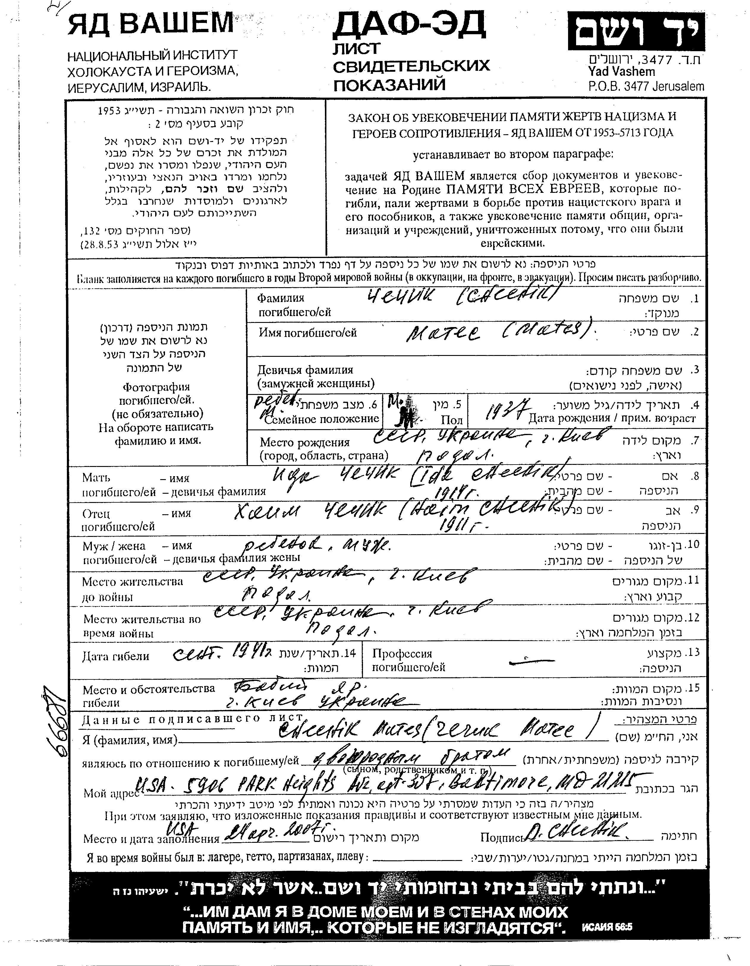 Mates wurde in der Schoah ermordet. Todesort: Babi Yar, Ukraine (UdSSR) im Jahr 09/1941.