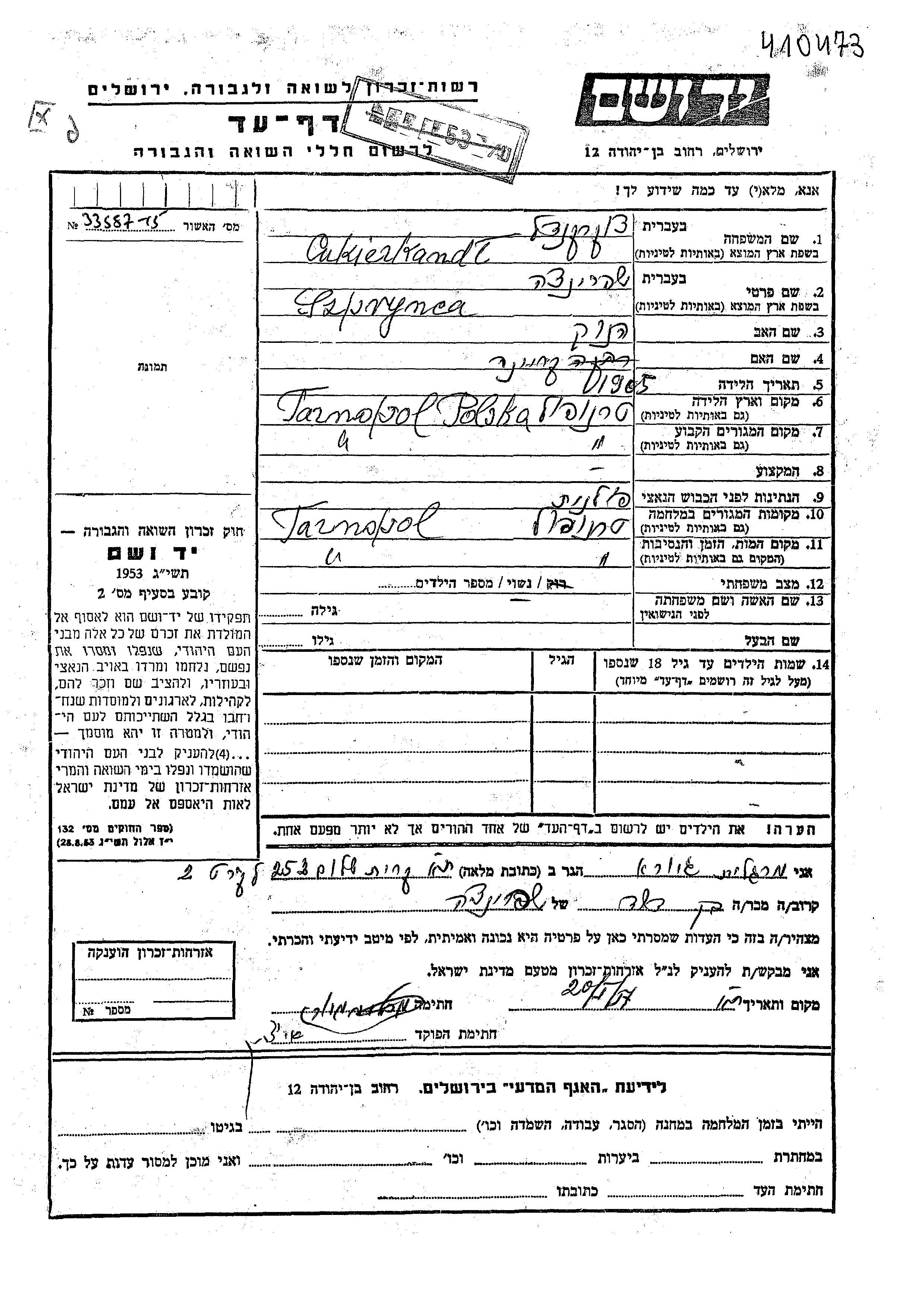 Szprynca wurde in der Schoah ermordet. Todesort: Tarnopol, Polen.