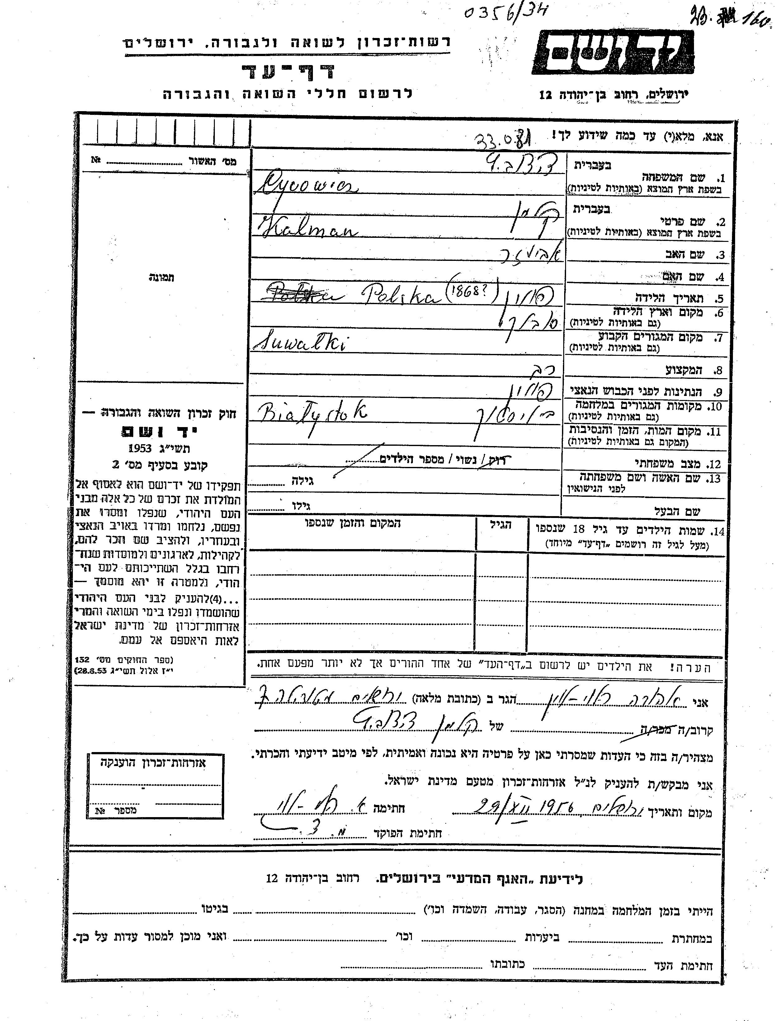 Kalman Cycowicz wurde im Jahr 1868 in Suwalki, Polen geboren. Er war der Sohn von Aviezer. Er war Rabbiner und Verheiratet. Vor dem Zweiten Weltkrieg lebte er in Suwalki, Polen. Während des Krieges war er in Bialistok, Polen.