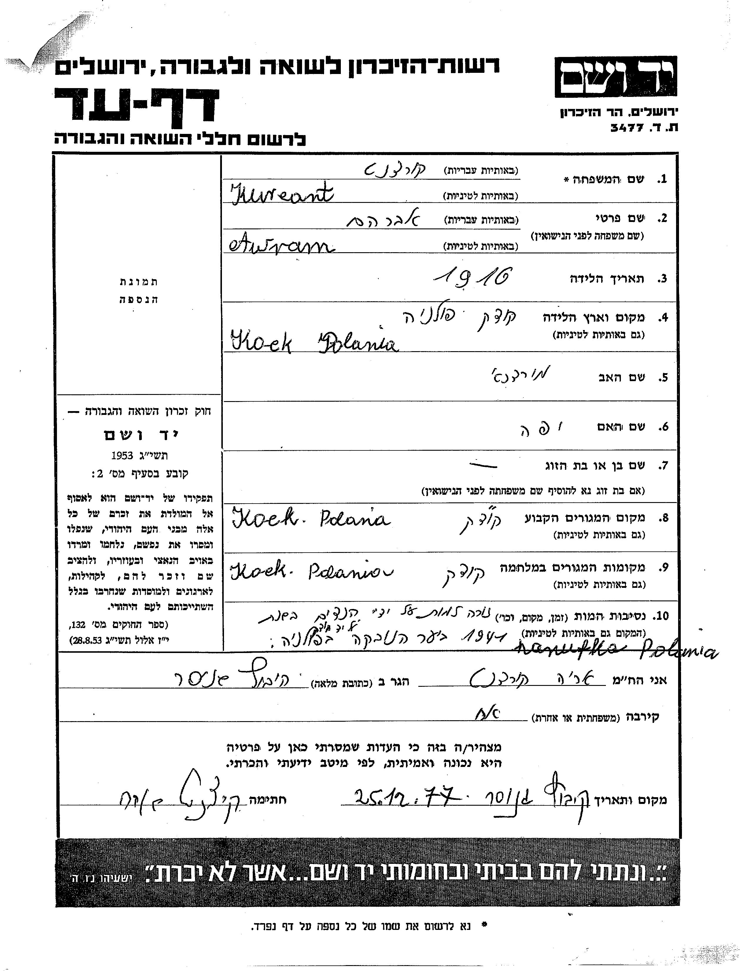 Awram wurde in der Schoah ermordet. Todesort: Polen im Jahr 1941.