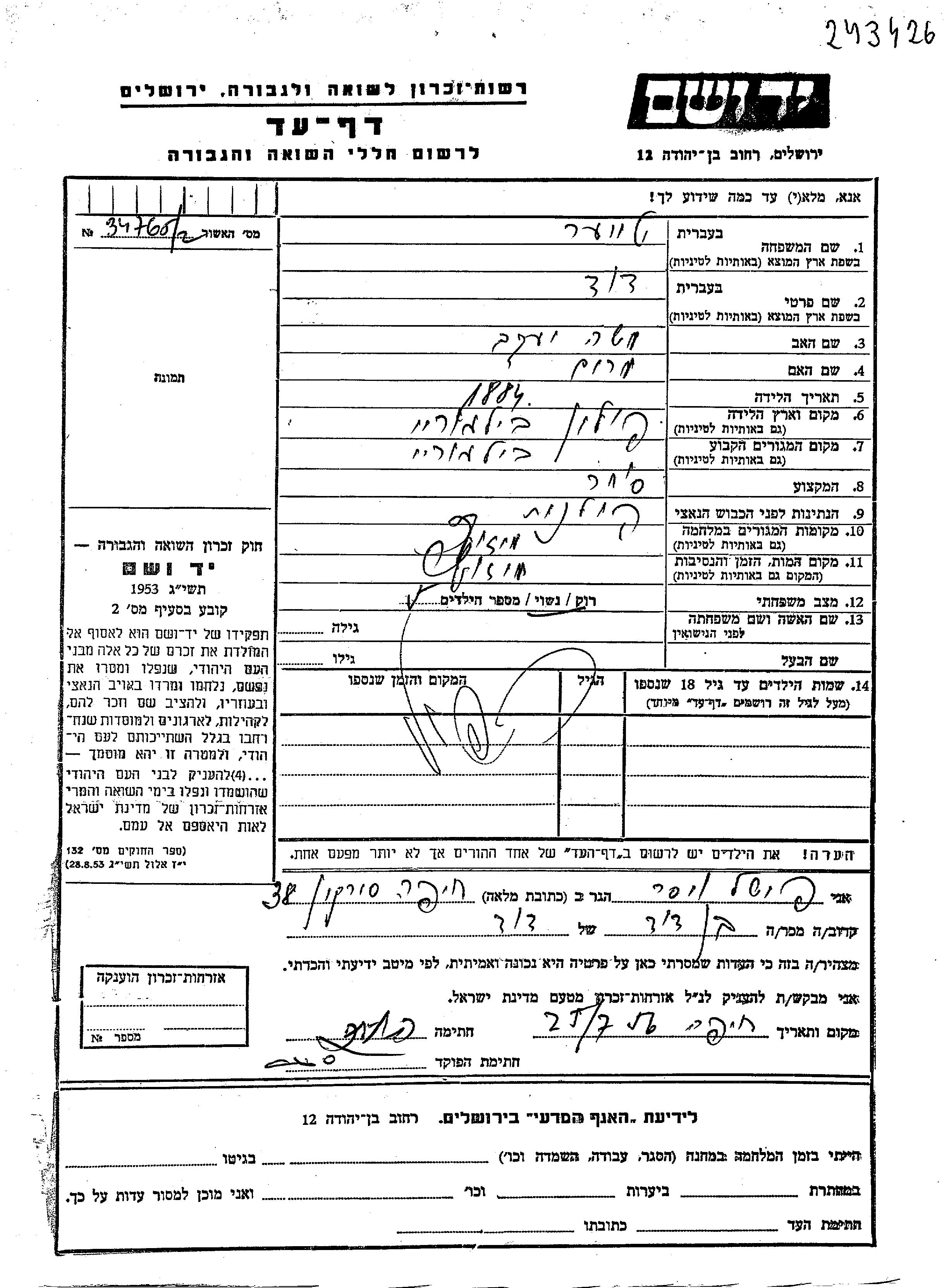 David wurde in der Schoah ermordet. Todesort: Mizocz, Polen.