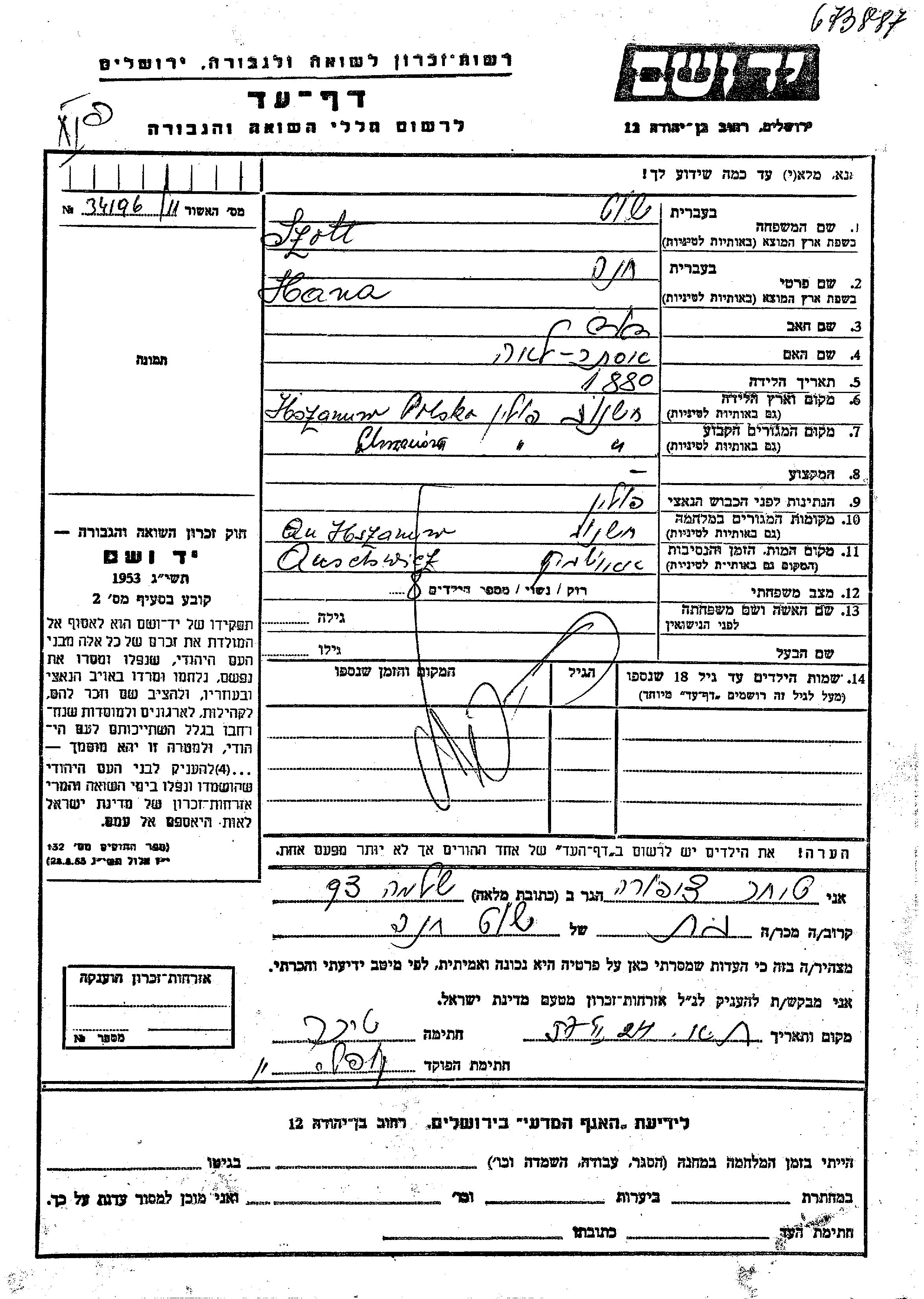 Hana wurde in der Schoah ermordet. Todesort: Auschwitz, Polen.