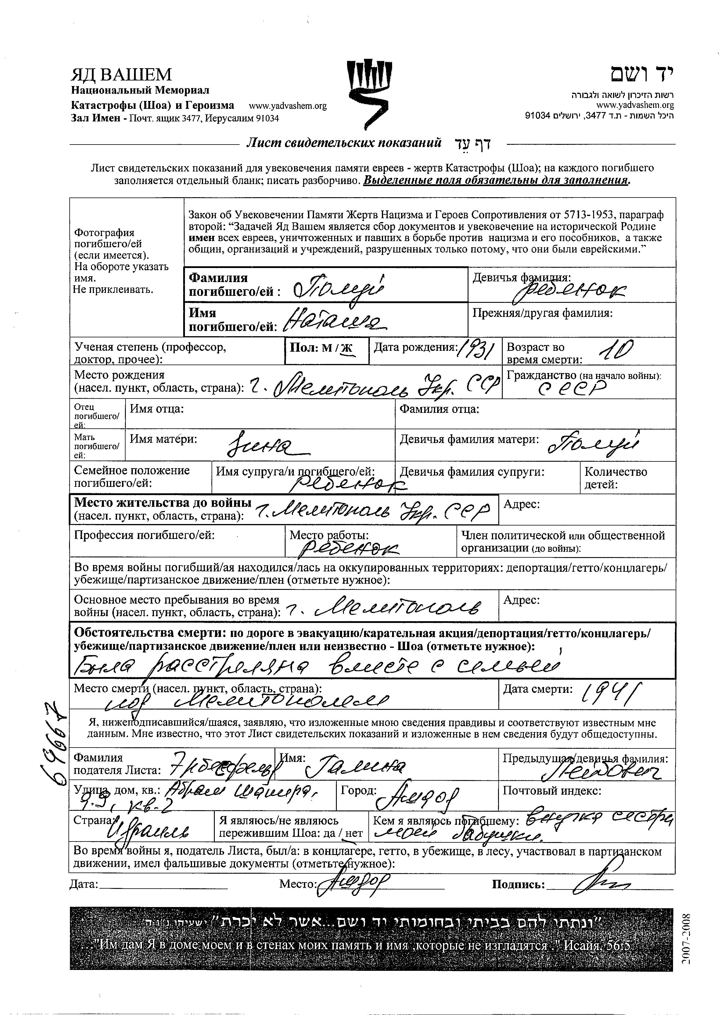 Natasha wurde in der Schoah ermordet. Todesort: Melitopol, Ukraine (UdSSR) im Jahr 1941.