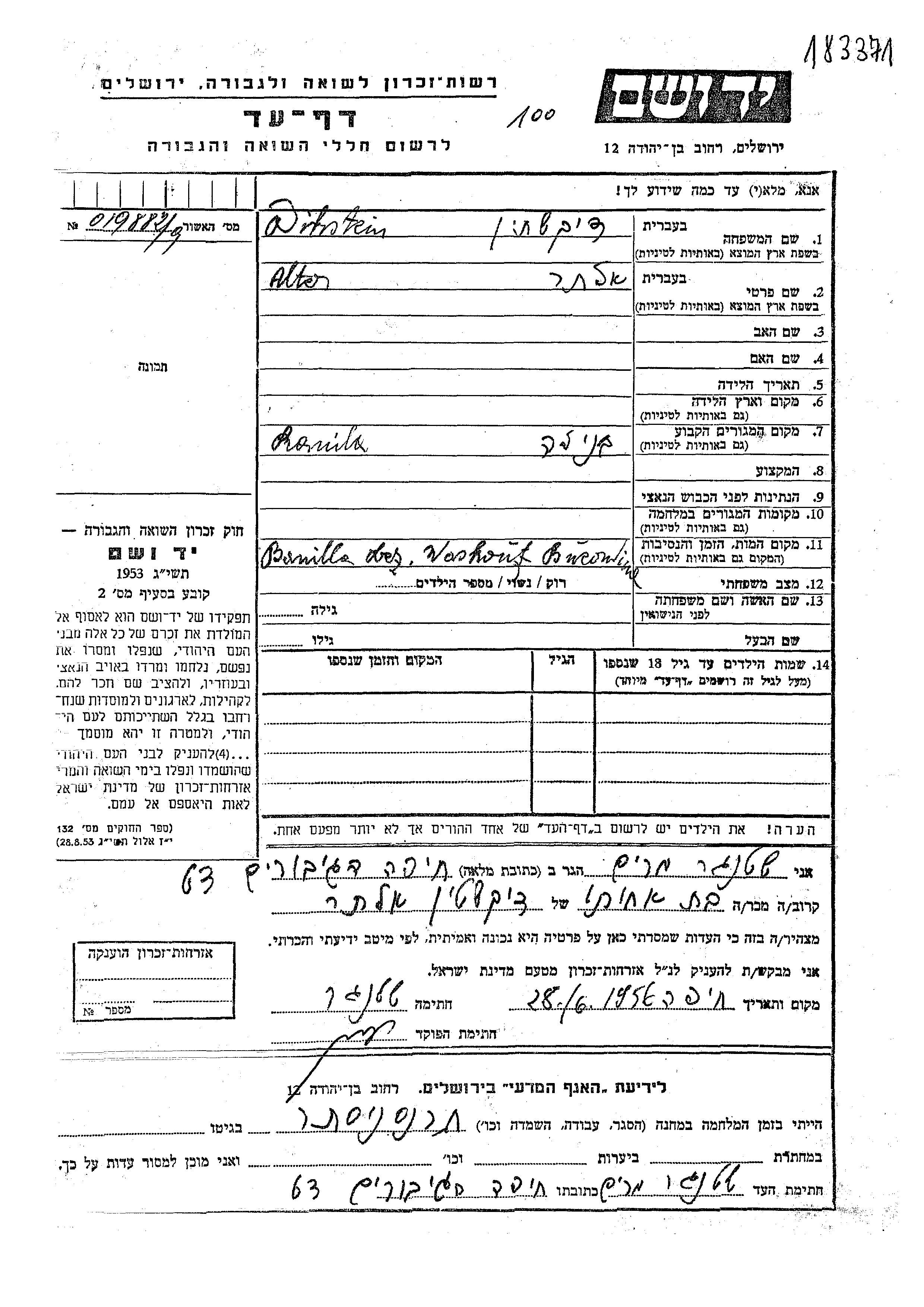 Alter Dikstein. Vor dem Zweiten Weltkrieg lebte er in Banila, Rumänien.