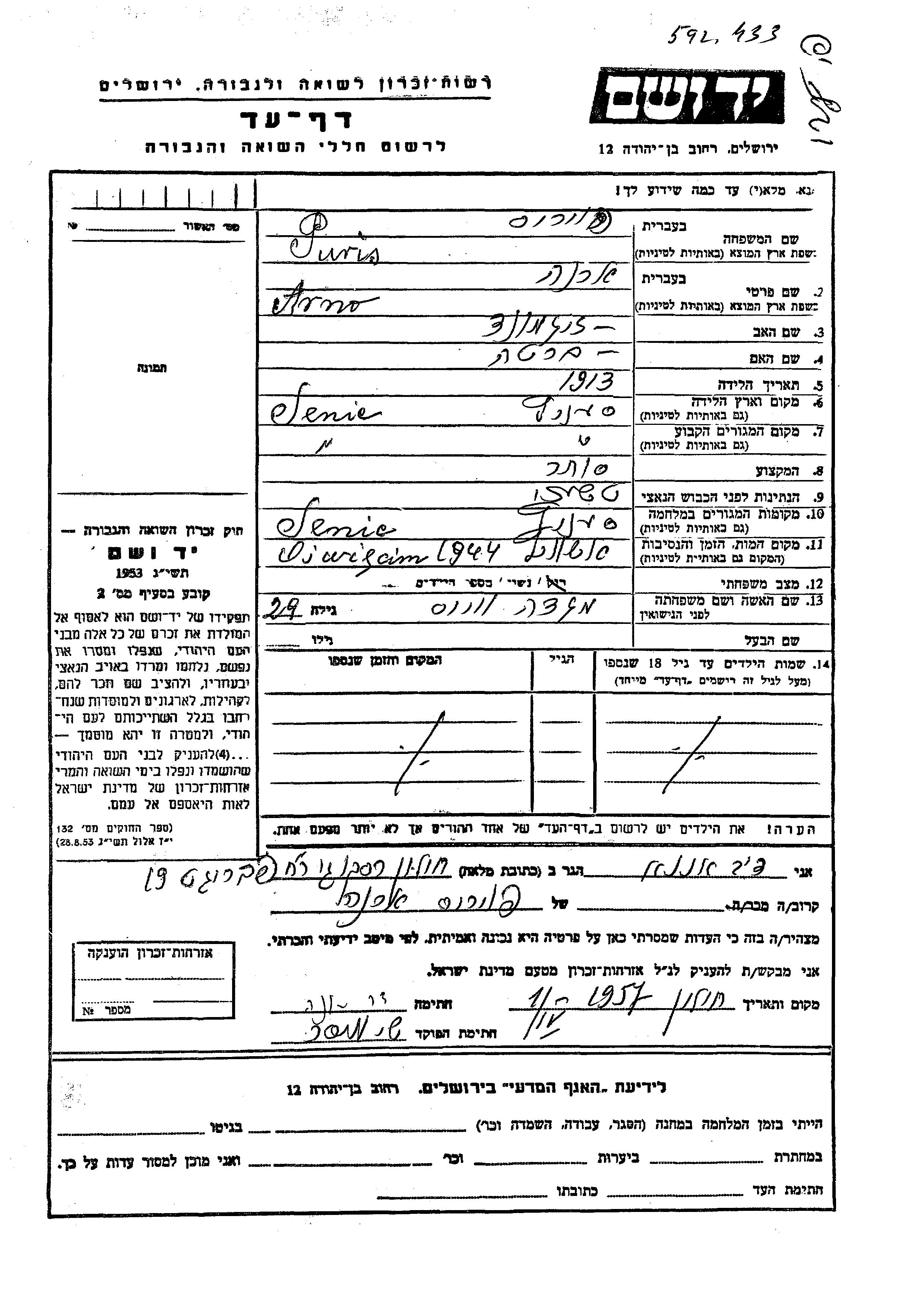 Arno Erna wurde in der Schoah ermordet. Todesort: Auschwitz, Polen im Jahr 1944.