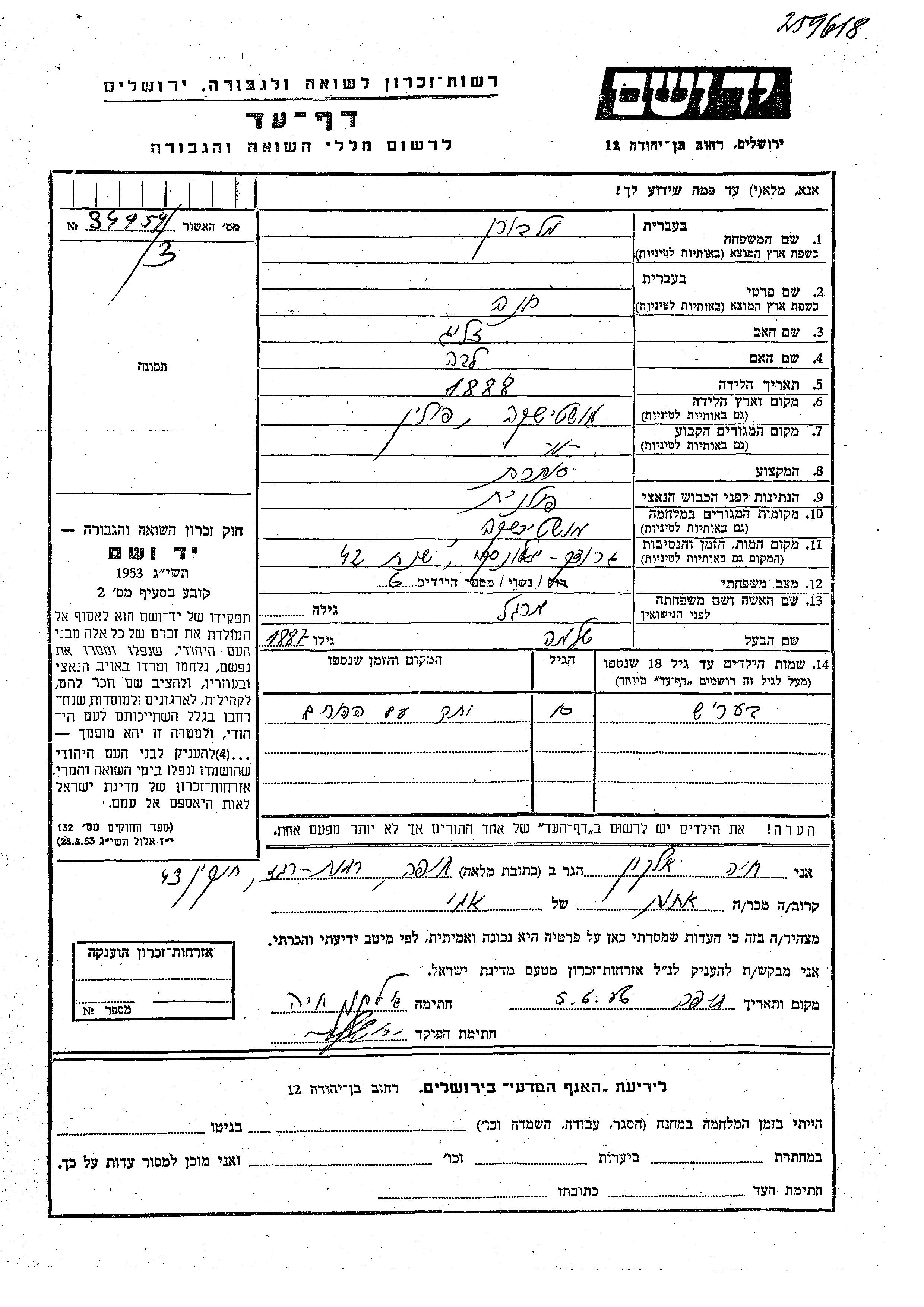 Khana Melbourn, geb. Margel wurde im Jahr 1888 in Mostiska, Polen geboren. Sie war die Tochter von Zelig und Leba. Sie war Kaufmann/-frau und mit Shlomo Verheiratet. Vor dem Zweiten Weltkrieg lebte sie in Mostiska, Polen. Während des Krieges war sie in Mostiska, Polen.