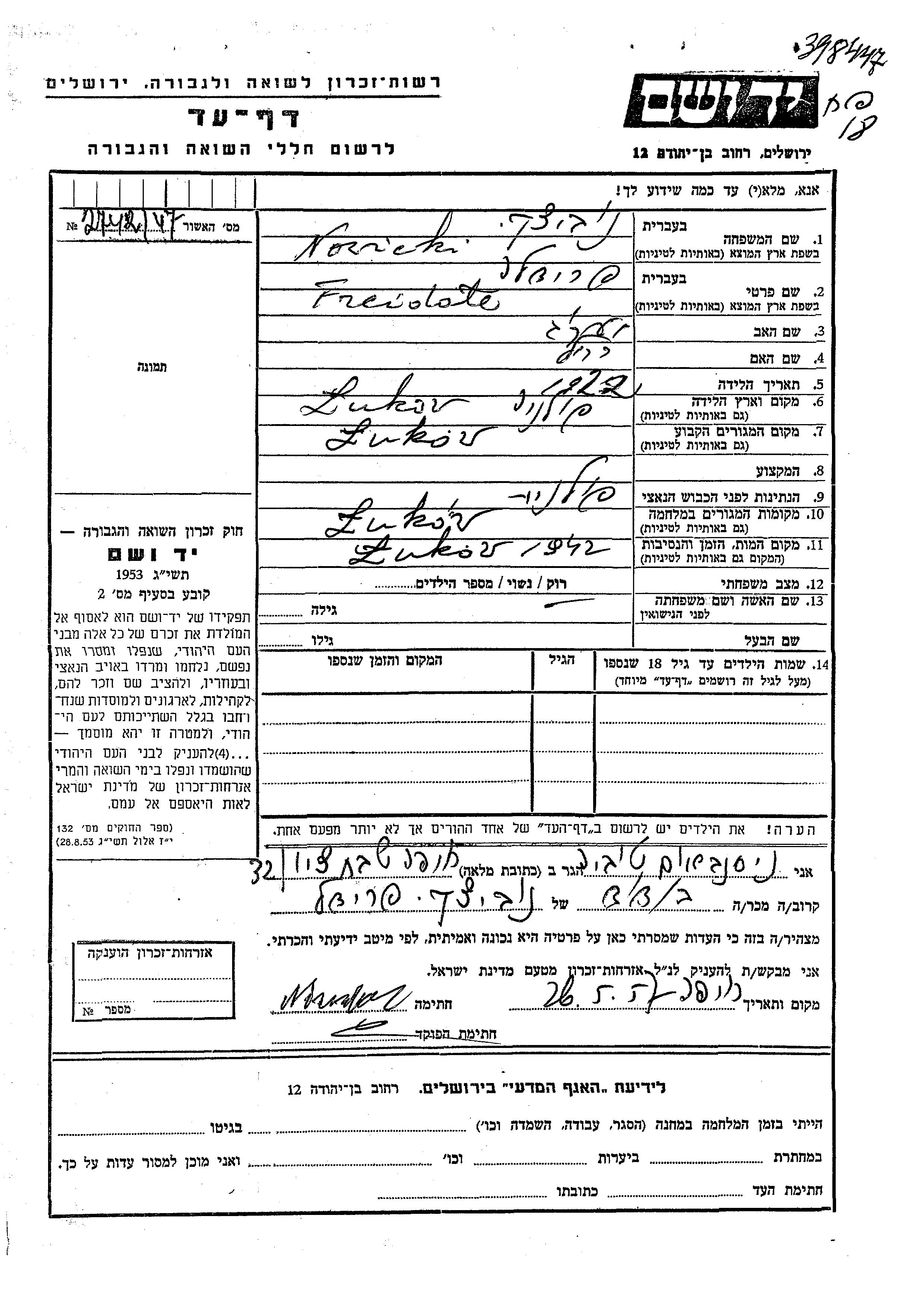 Freidale Fridele Nowicki wurde im Jahr 1922 in Lukow, Polen geboren. Sie war die Tochter von Yaakov und Rakhel. Sie war Ledig. Vor dem Zweiten Weltkrieg lebte sie in Lukow, Polen. Während des Krieges war sie in Lukow, Polen.