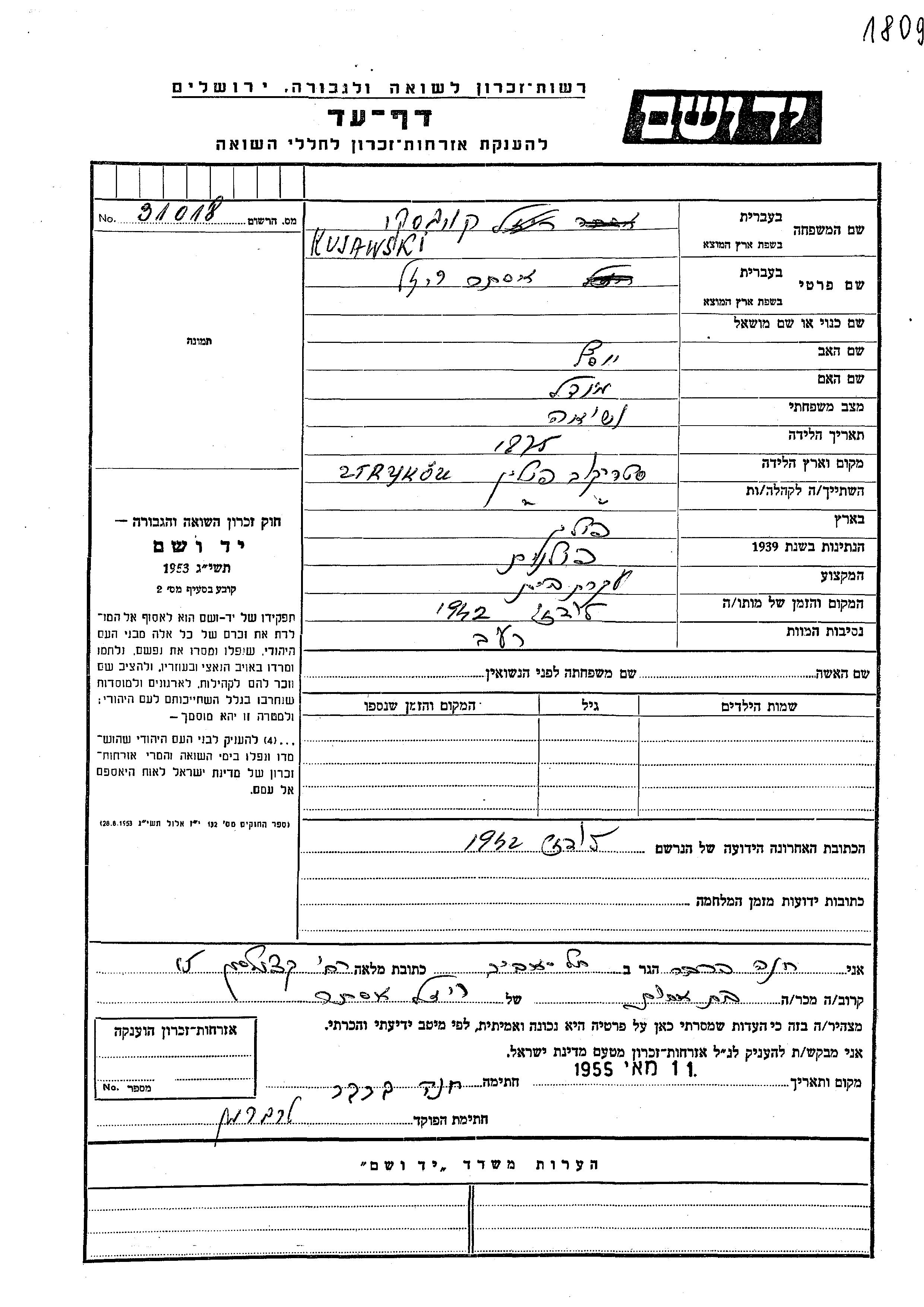 Ester Reizel Kujawski wurde im Jahr 1875 in Strykow, Polen geboren. Sie war die Tochter von Yosef und Mindl. Sie war Hausfrau und Verheiratet. Während des Krieges war sie in Lodz, Polen.