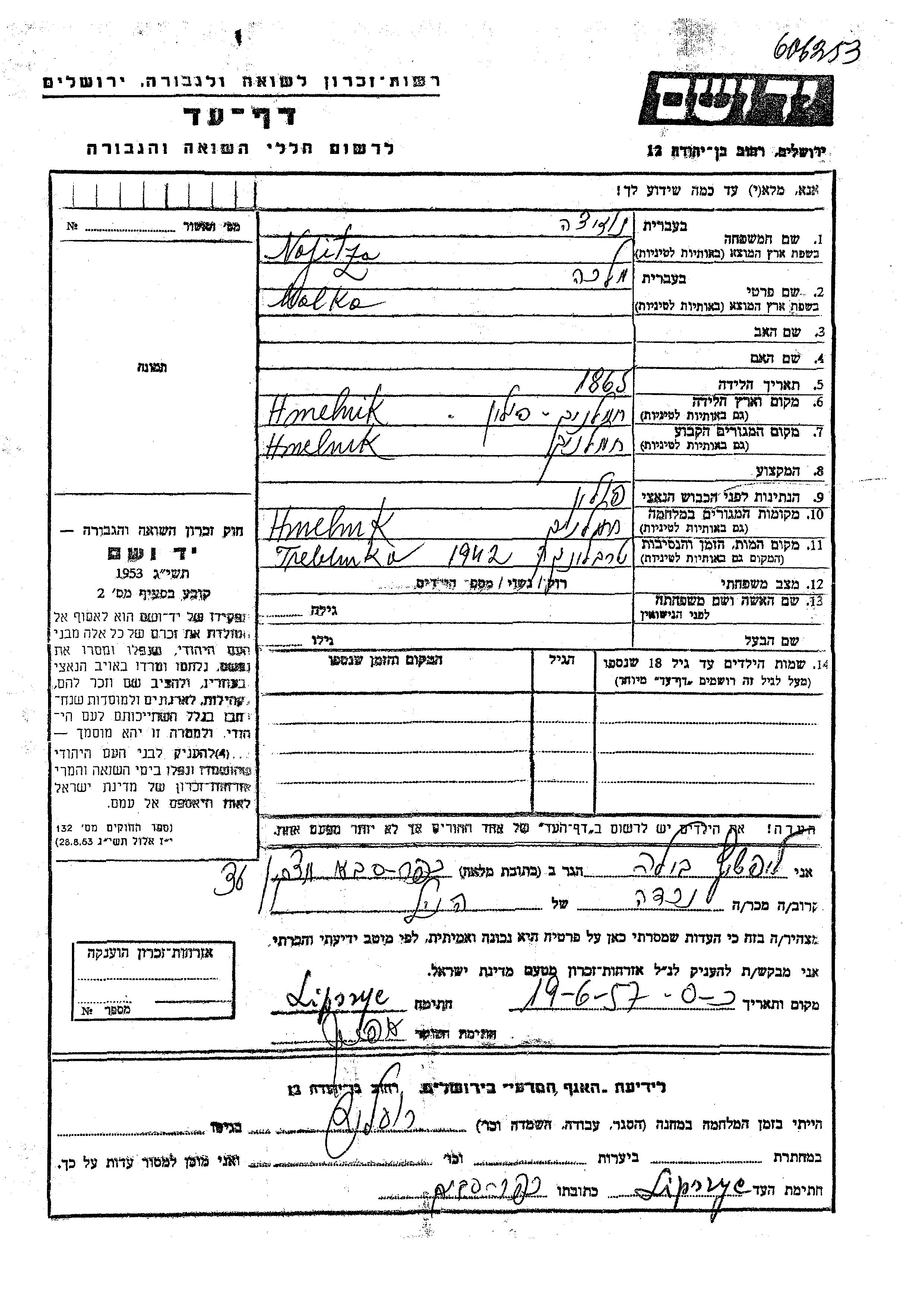 Nojitza Malka 1865 Hmelnyik, Gedenkblatt