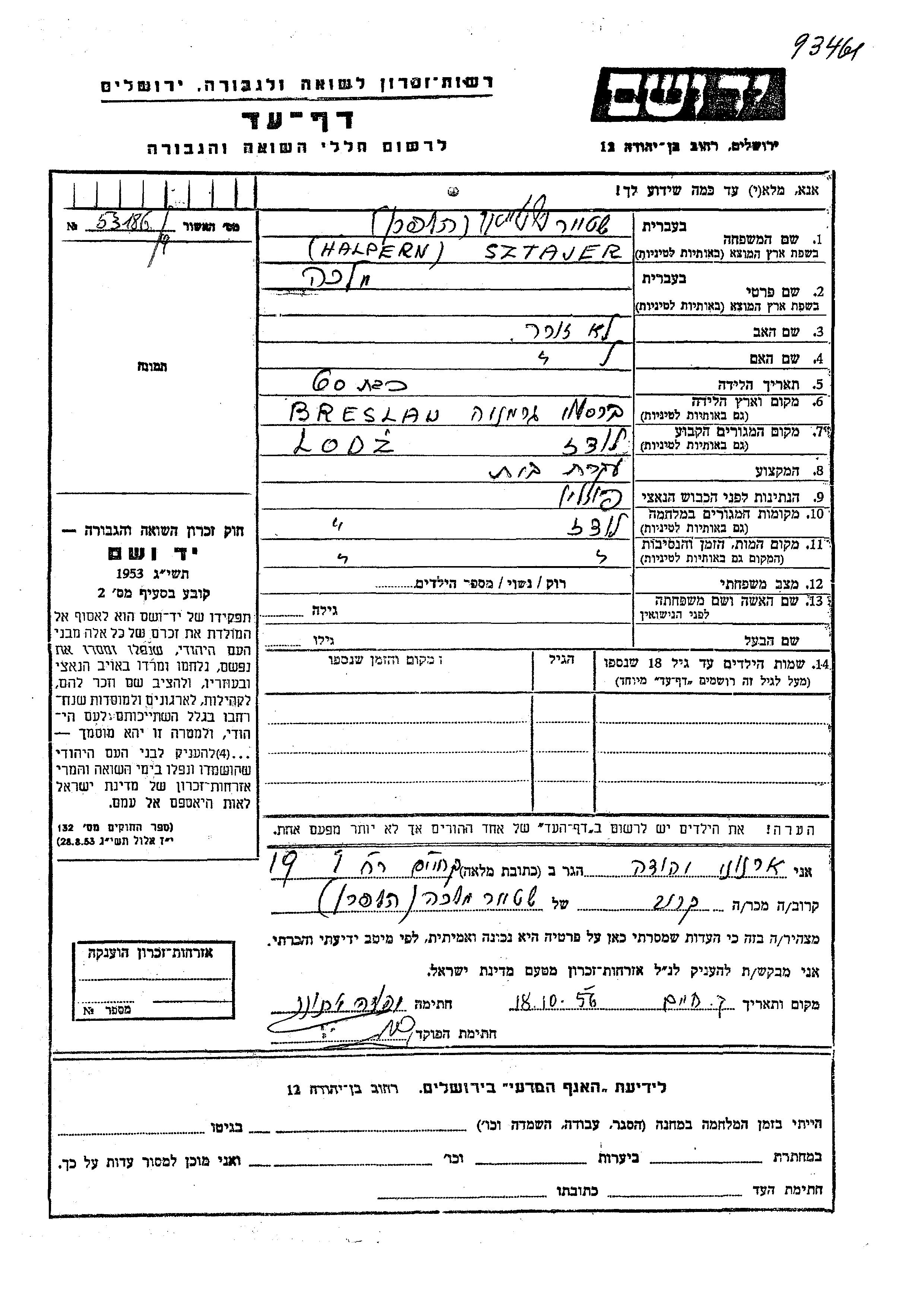 Sztajer Malka Lodz, Polen Gedenkblatt