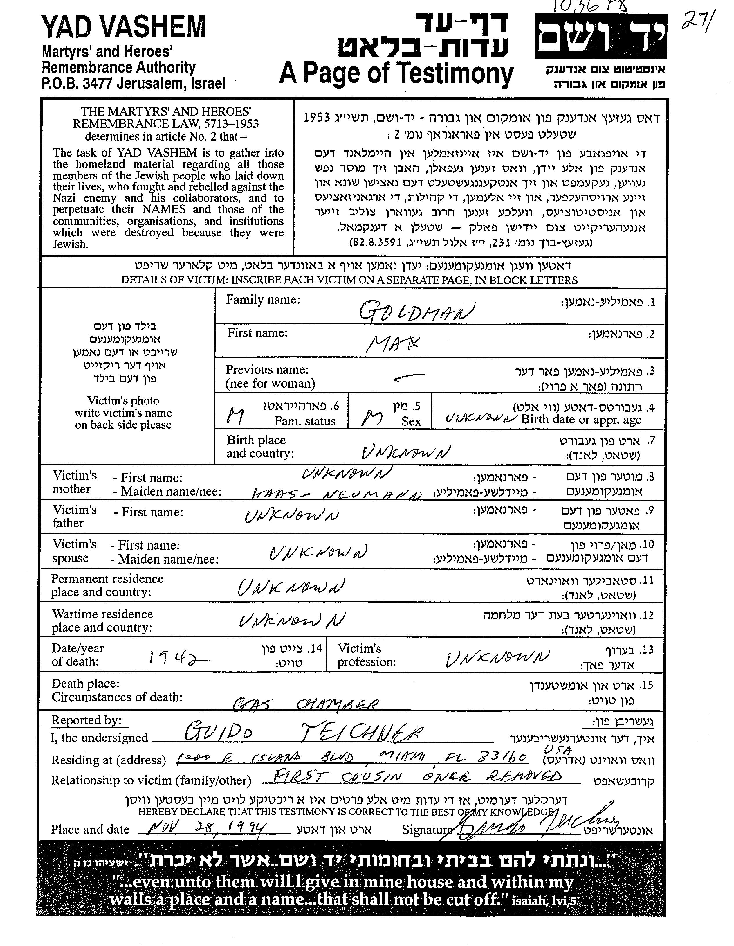 Max wurde in der Schoah ermordet. Todesort: unbekannt im Jahr 1942.