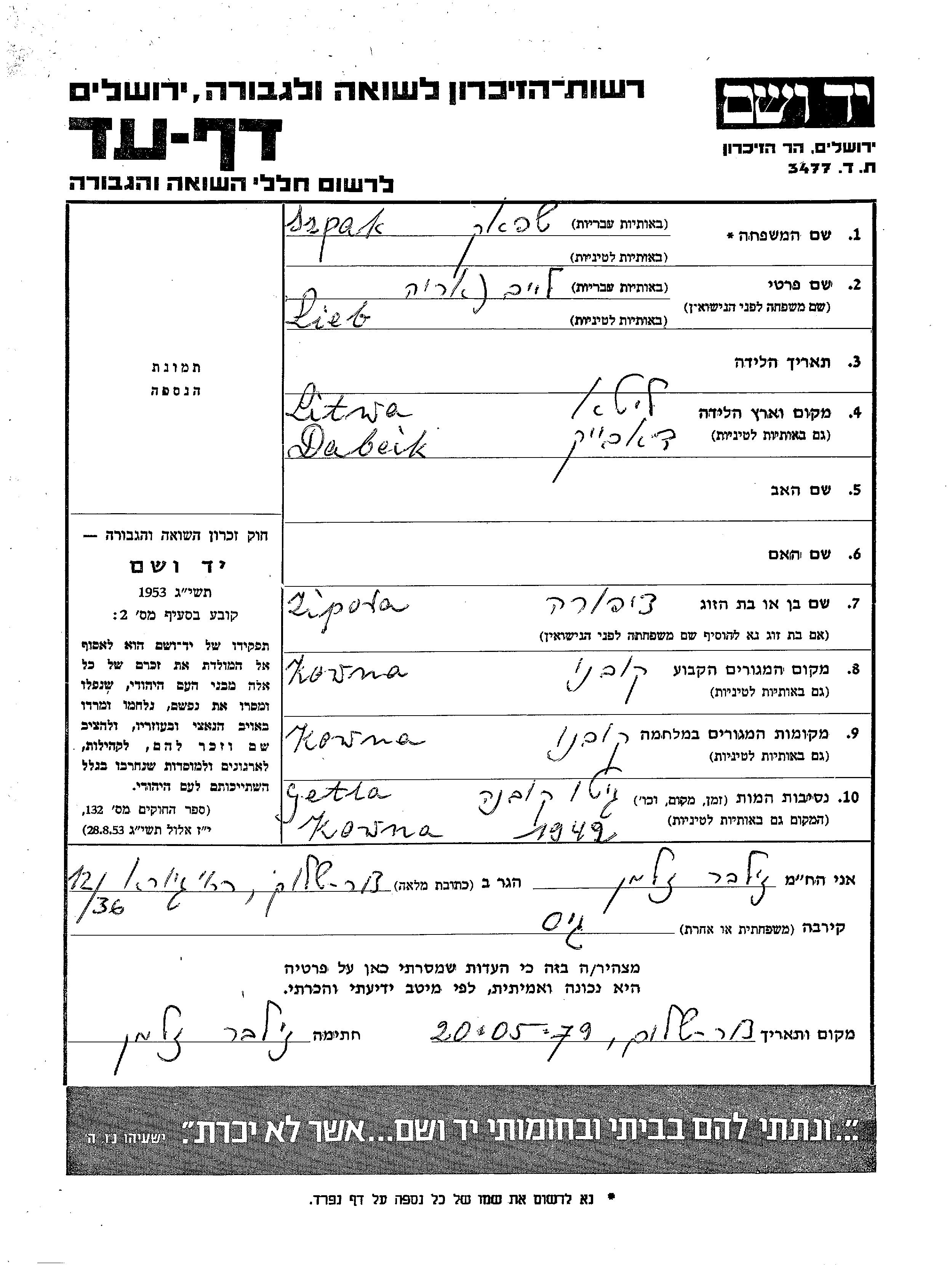 Lieb Arie wurde in der Schoah ermordet. Todesort: Kovna, Litauen im Jahr 1942.