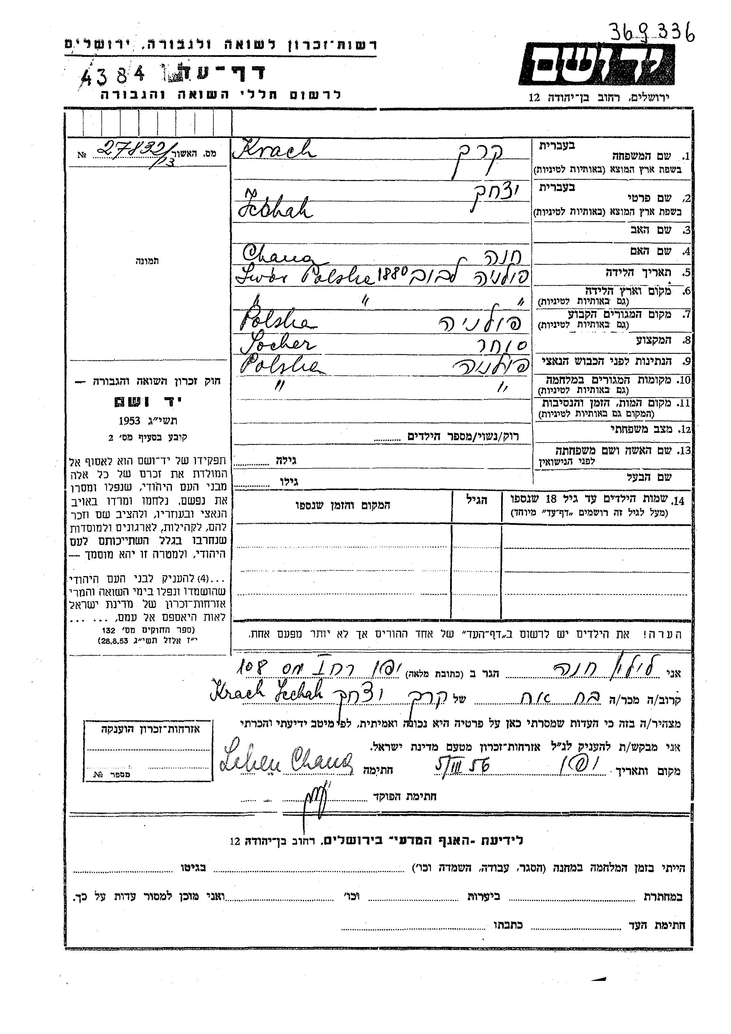 Jcchak Krach wurde im Jahr 1880 in Lwow, Polen geboren. Er war der Sohn von Chana. Er war Kaufmann/-frau. Vor dem Zweiten Weltkrieg lebte er in Polen. Während des Krieges war er in Polen.