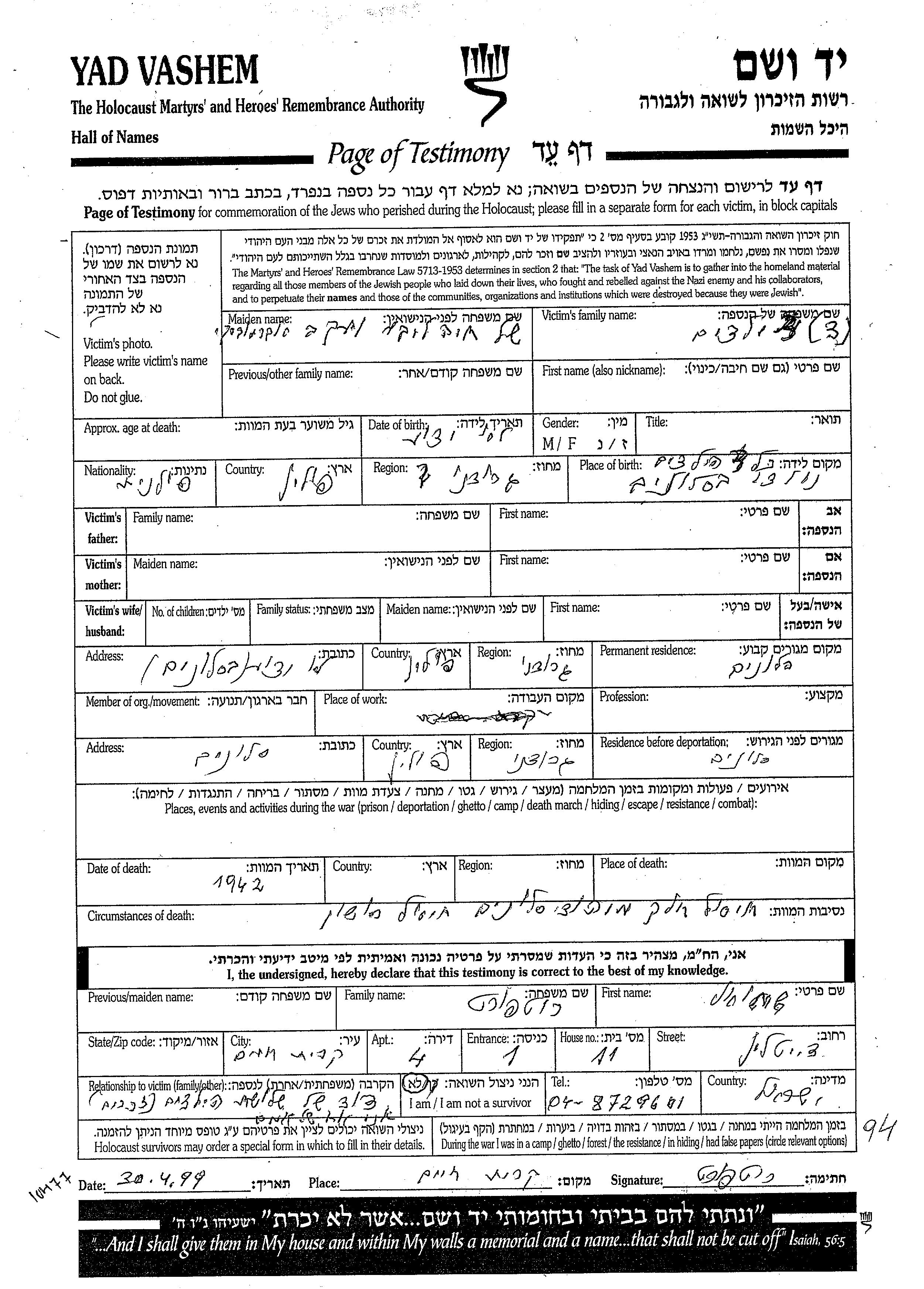 Er/sie wurde in der Schoah ermordet. Todesort: Slonim, Polen im Jahr 1942.