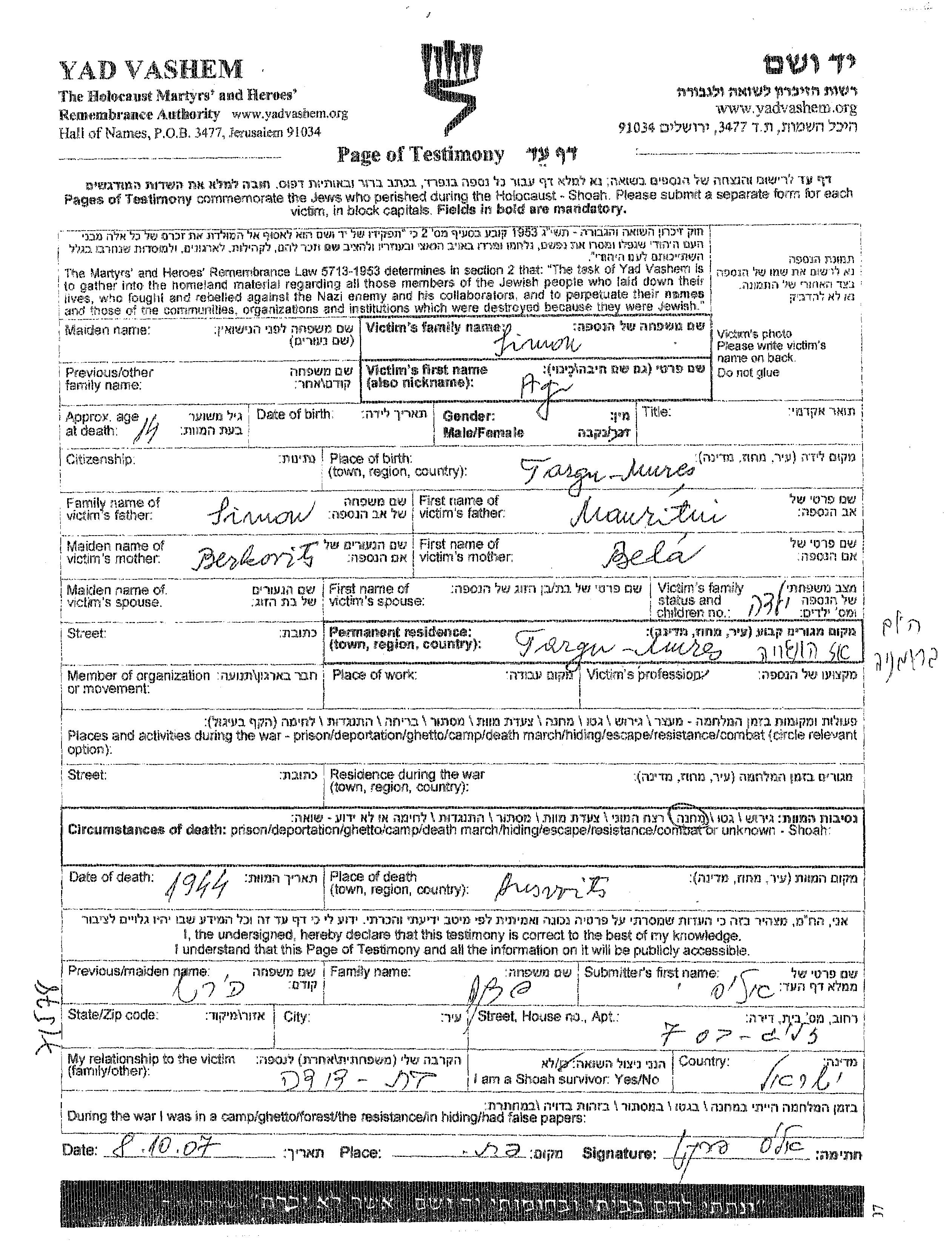 Simon Agi Targu Mures, Rumänien Gedenkblatt