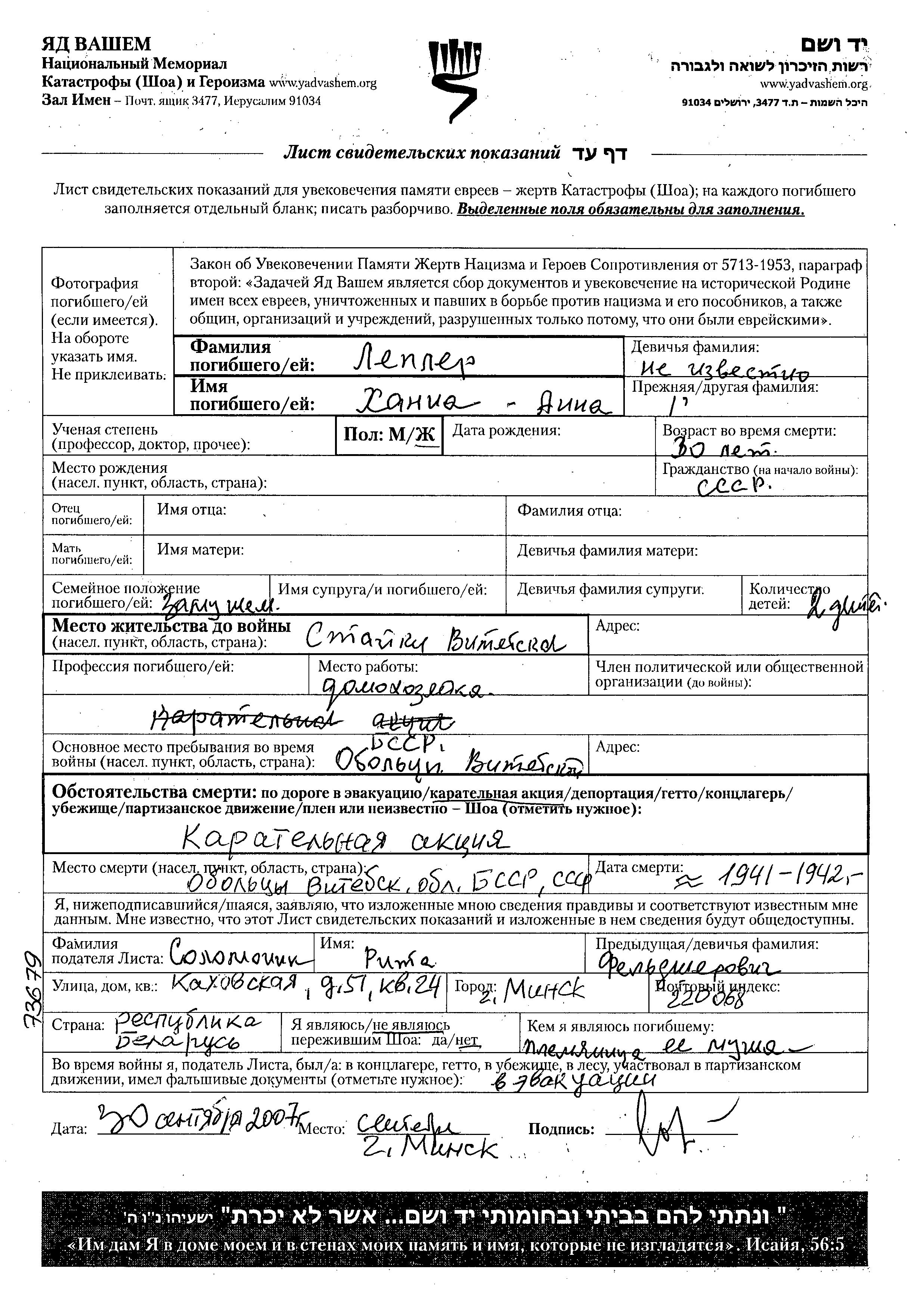Juden wurden in der Schoah auf verschiedenste Weisen ermordet, unter anderem: Vergasen, Erschiessen, lebendig verbrannt werden, lebendig begraben werden, Tod durch Erschöpfung durch Zwangsarbeit, Epidemien, mangels jeder hygienischer Bedingung oder dem Fehlen medizinischer Versorgung. Manche Juden nahmen sich das Leben, um der Festnahme und weiterer Verfolgung zu entgehen oder ihr hoffnungsloses, nicht nachlassendes Leiden zu beenden.
