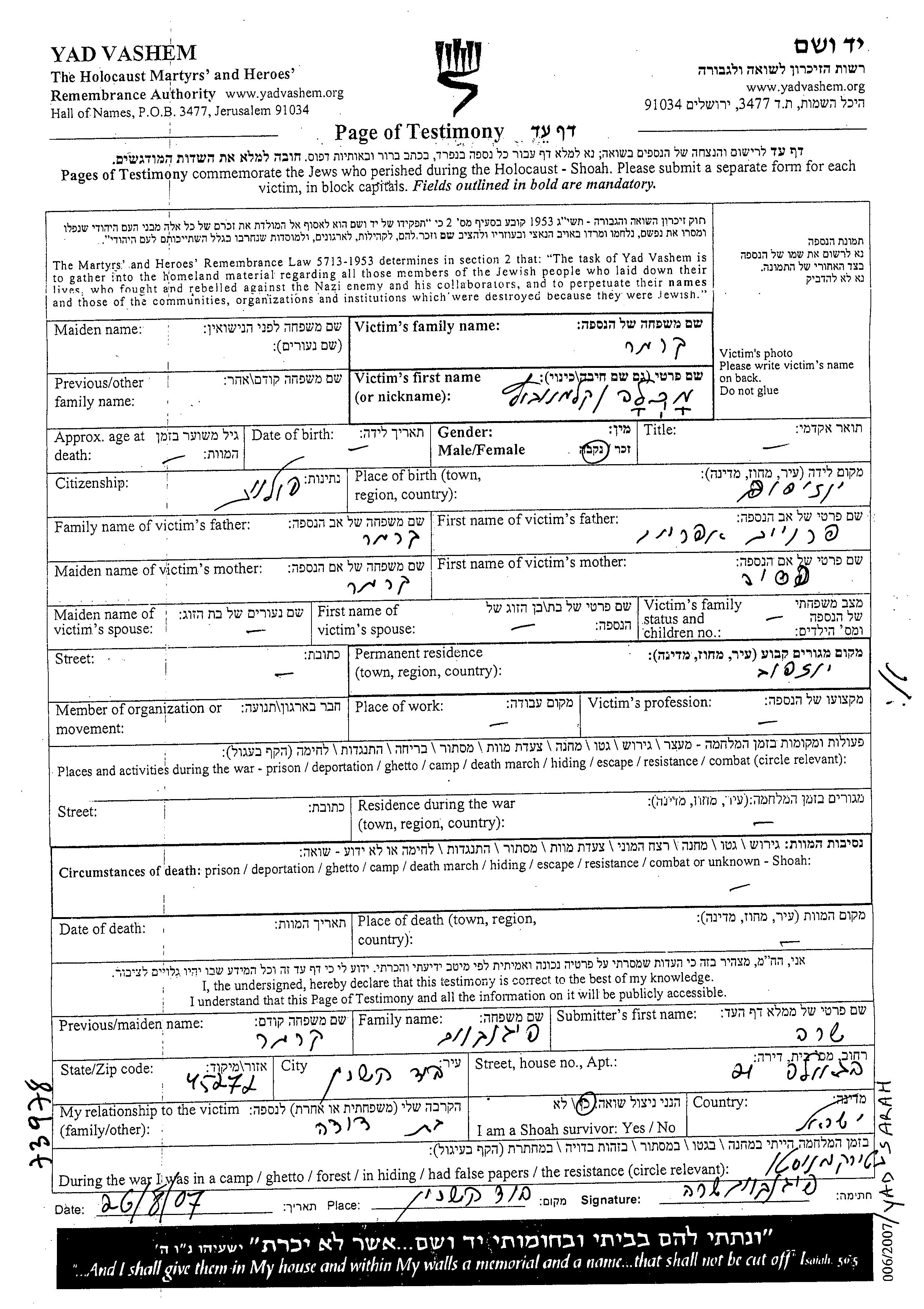 Suche nach einem Todesjahr im Zeitraum der Holocaust: 1933 bis 1945. Bitte wählen Sie 'Exakt' im Auswahlmenü, um nur nach einem einzelnen Jahr zu suchen, alternativ können Sie die flexibleren Optionen '+/- 2 Jahre' oder '+/- 5 Jahre' wählen.