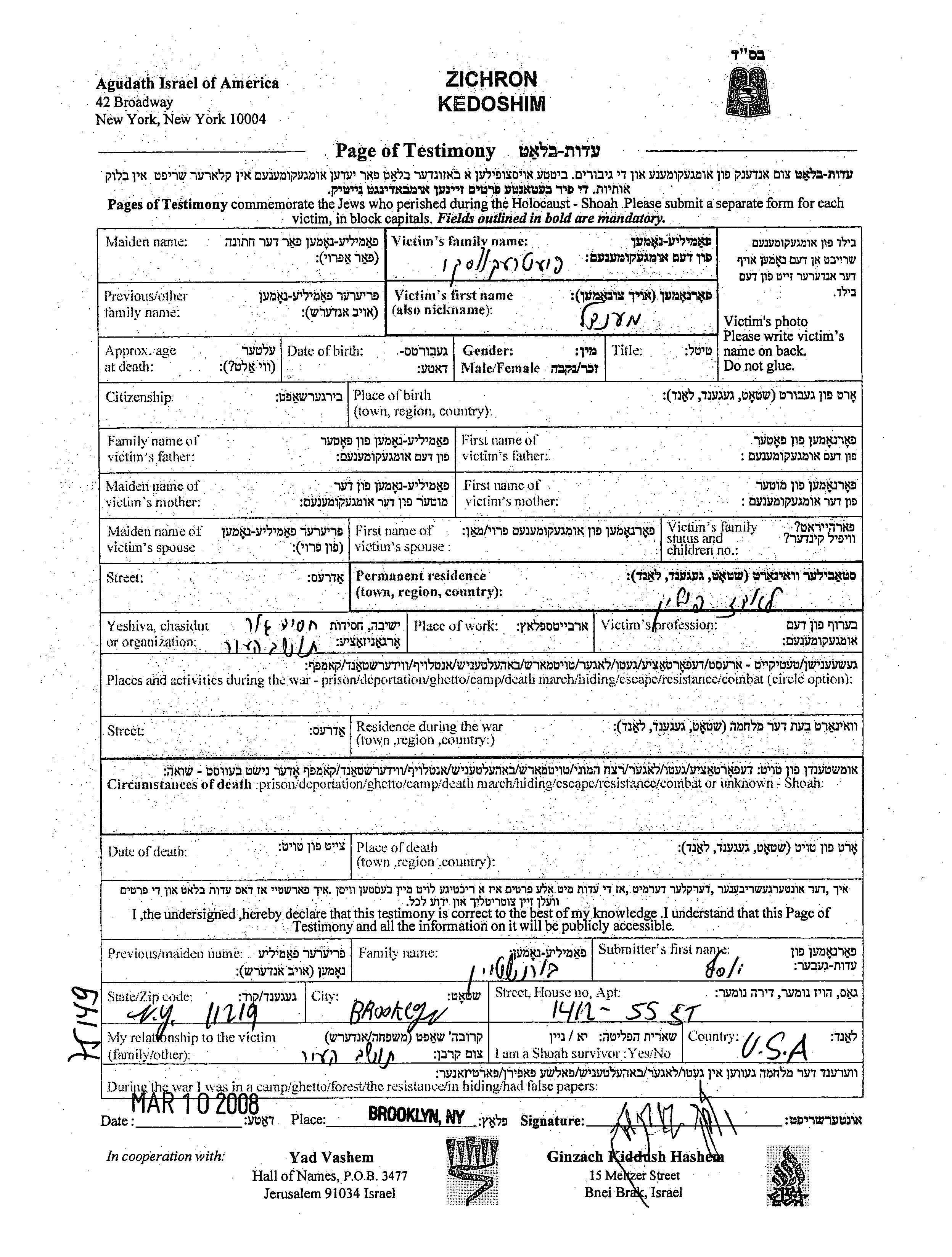 Mendl Pietrekowsky. Vor dem Zweiten Weltkrieg lebte er in Lodz, Polen. Während des Krieges war er in Lodz, Polen.
