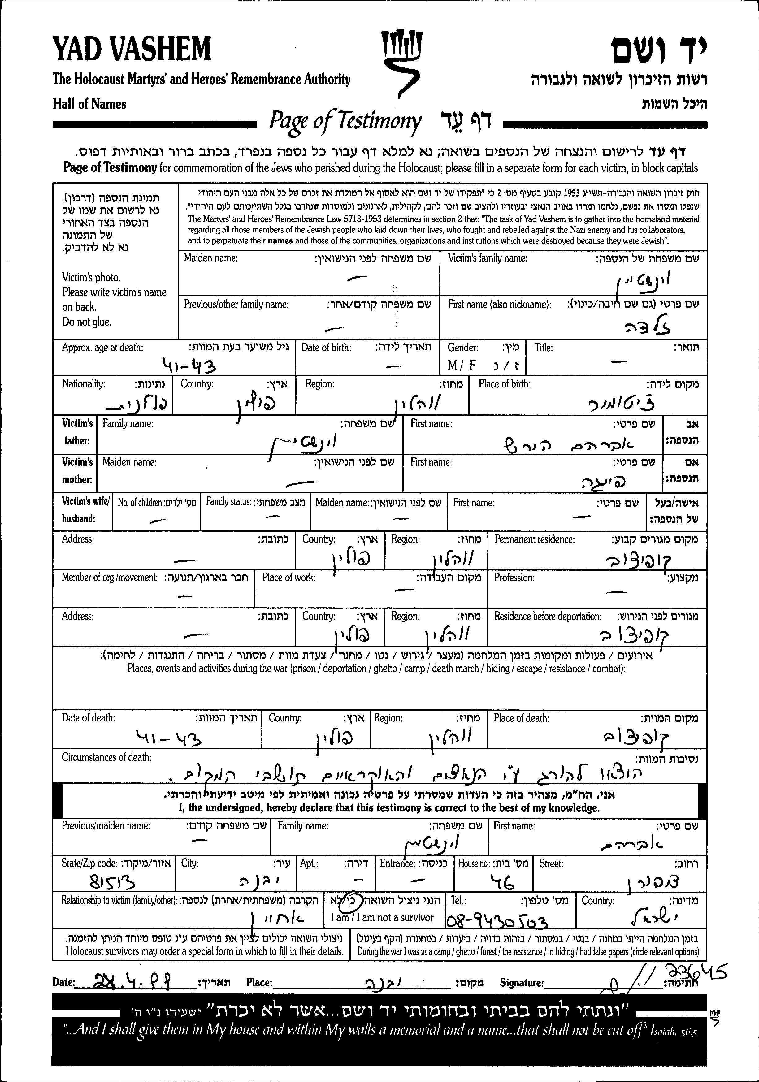 Veinshtein Zelda Kupiczow, Polen Gedenkblatt