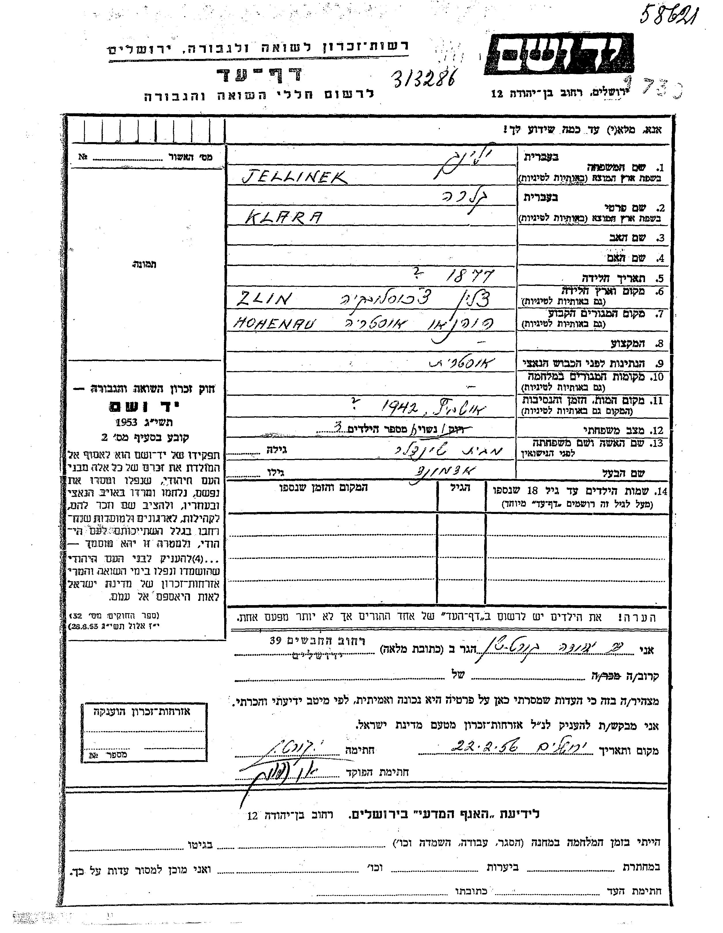 Klara Jellinek, geb. Shindler wurde im Jahr 1877 in Zlin, Tschechoslowakei geboren. Sie war mit Edmund Verheiratet. Vor dem Zweiten Weltkrieg lebte sie in Hohenau, Österreich.