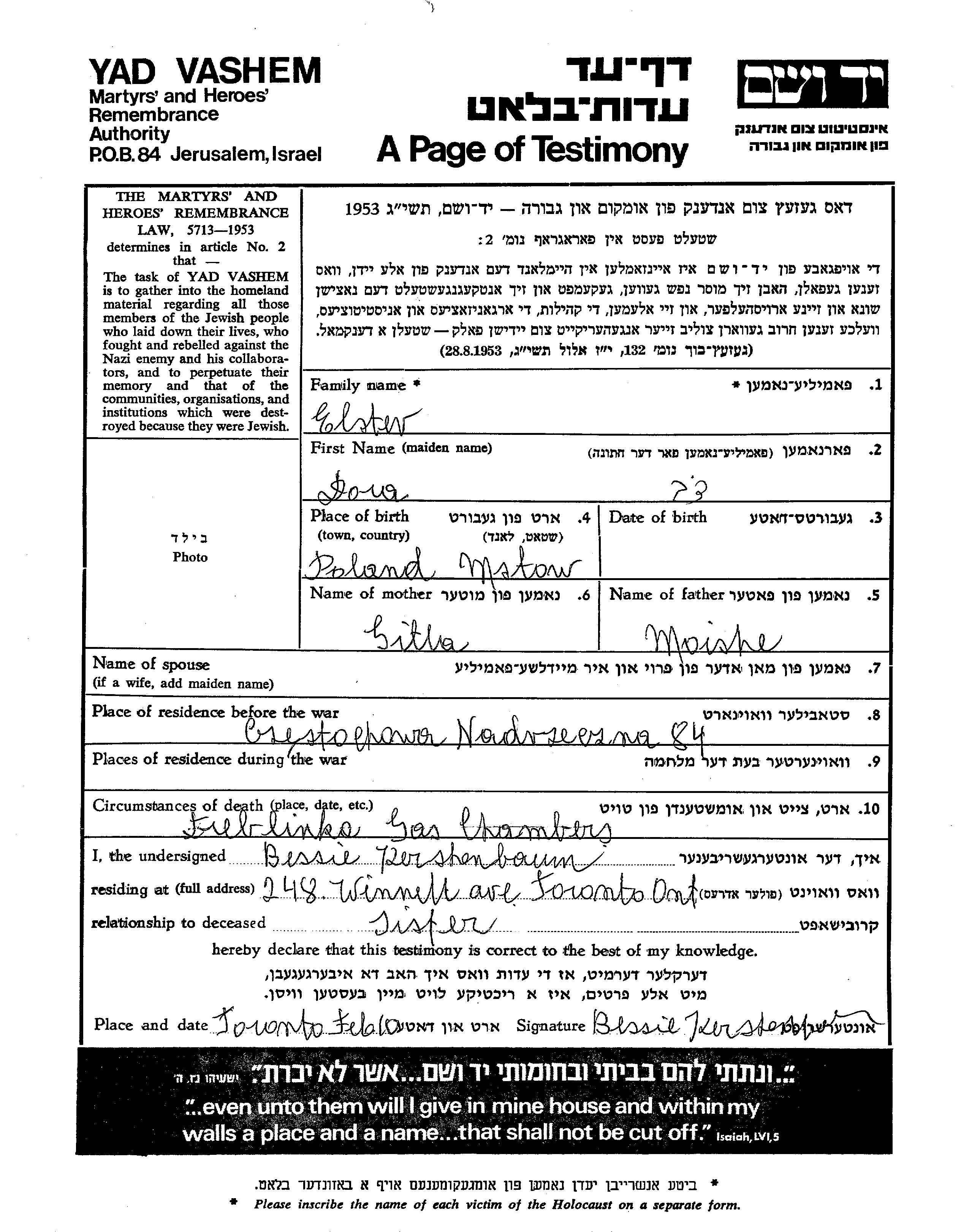 Dora Elster wurde in Mstow, Polen geboren. Sie war die Tochter von Moishe und Gitla. Vor dem Zweiten Weltkrieg lebte sie in Czestochowa, Polen.