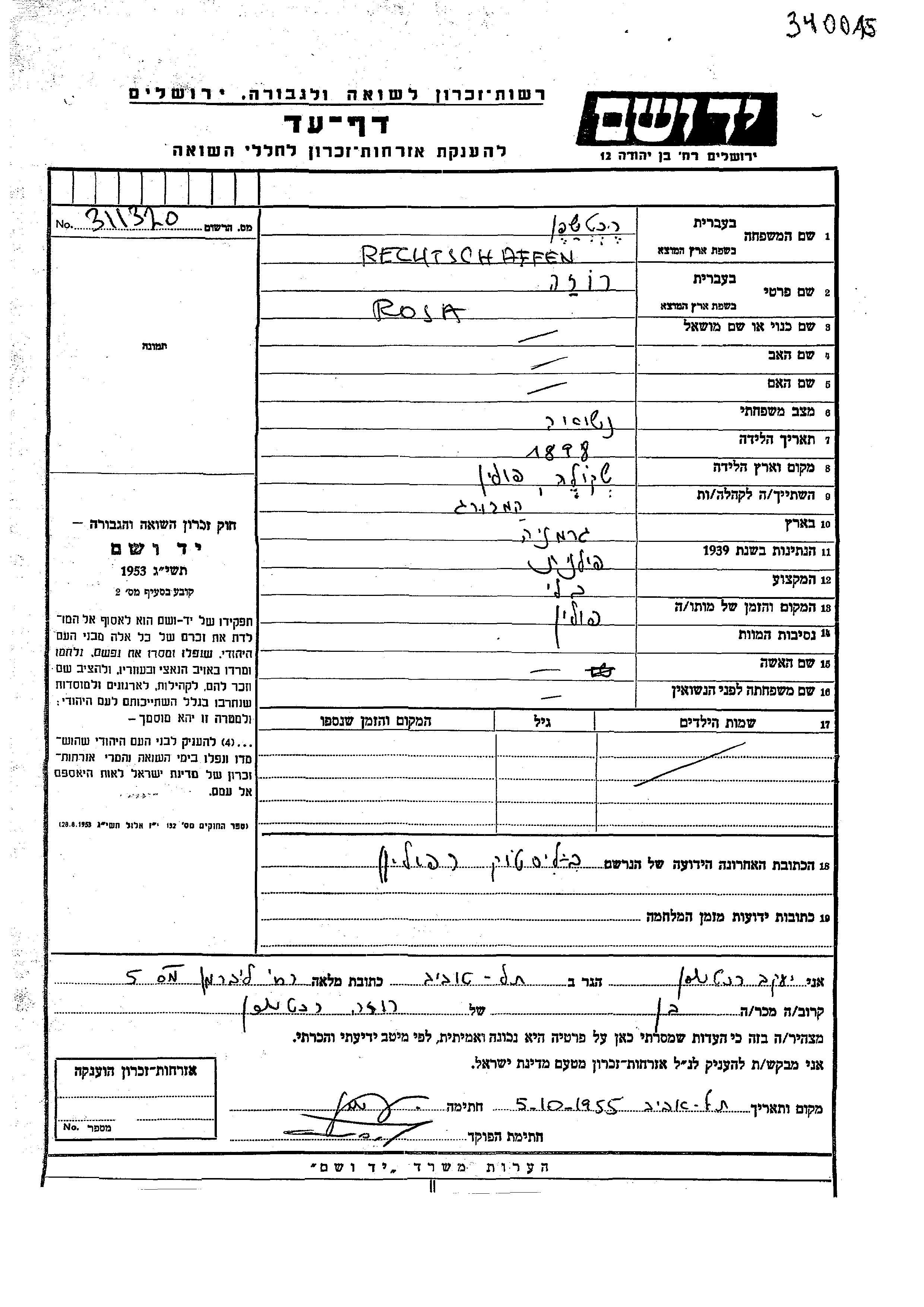 Rosa wurde in der Schoah ermordet. Todesort: Polen.