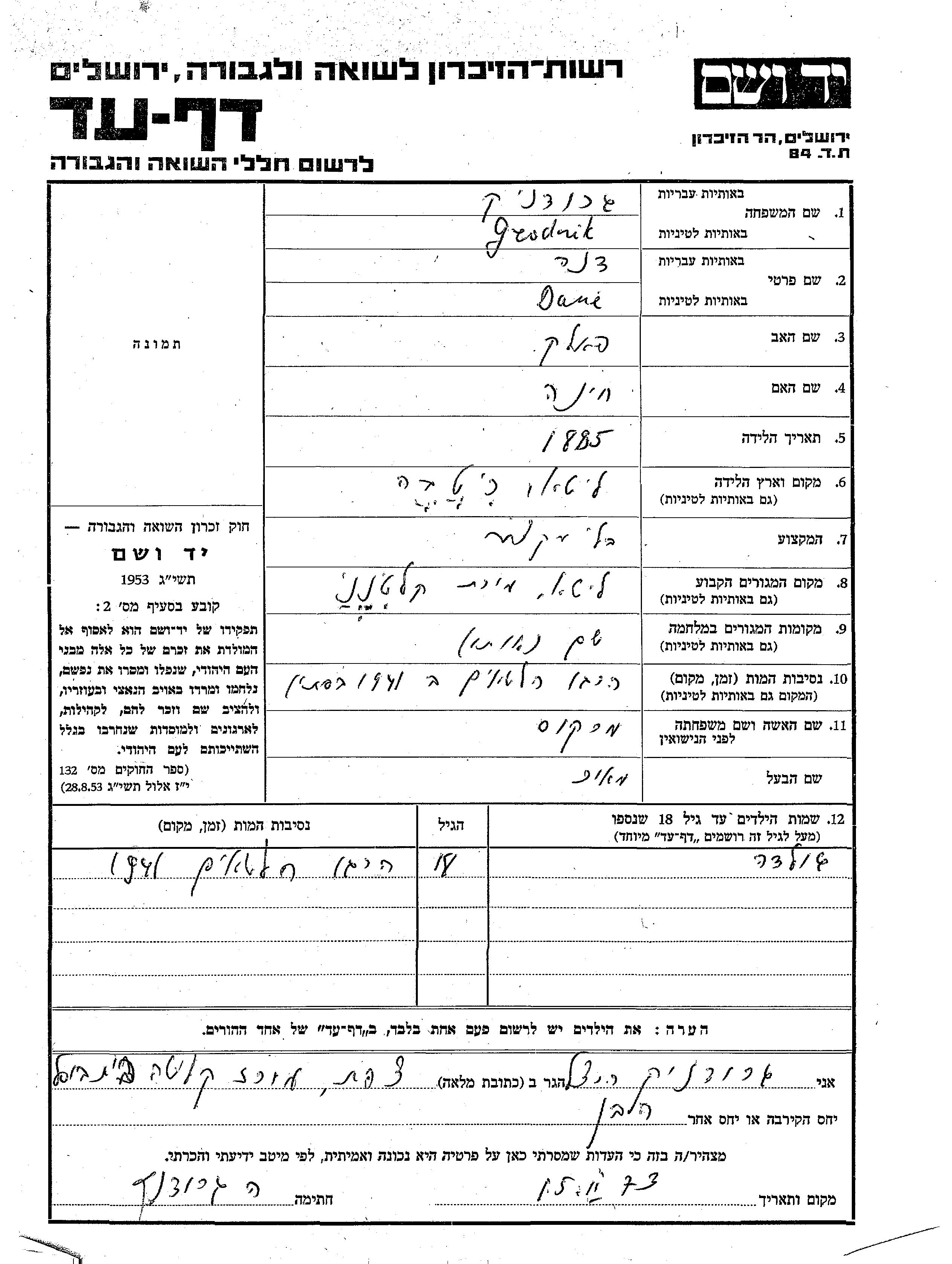 Dane Dana wurde in der Schoah ermordet. Todesort: unbekannt im Jahr 09/1941.