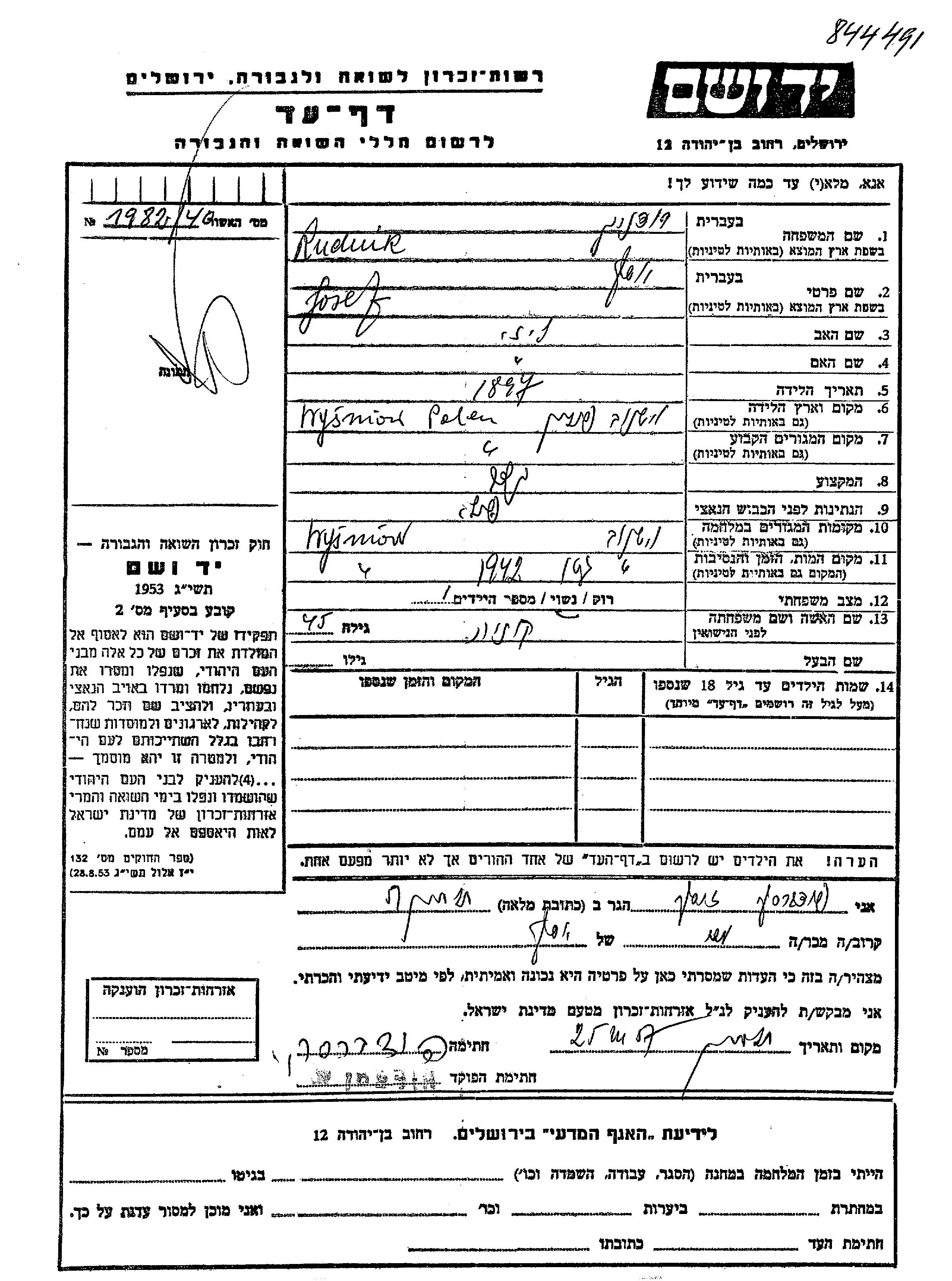 Josef wurde in der Schoah ermordet. Todesort: Wiszniew, Polen im Jahr 1942.