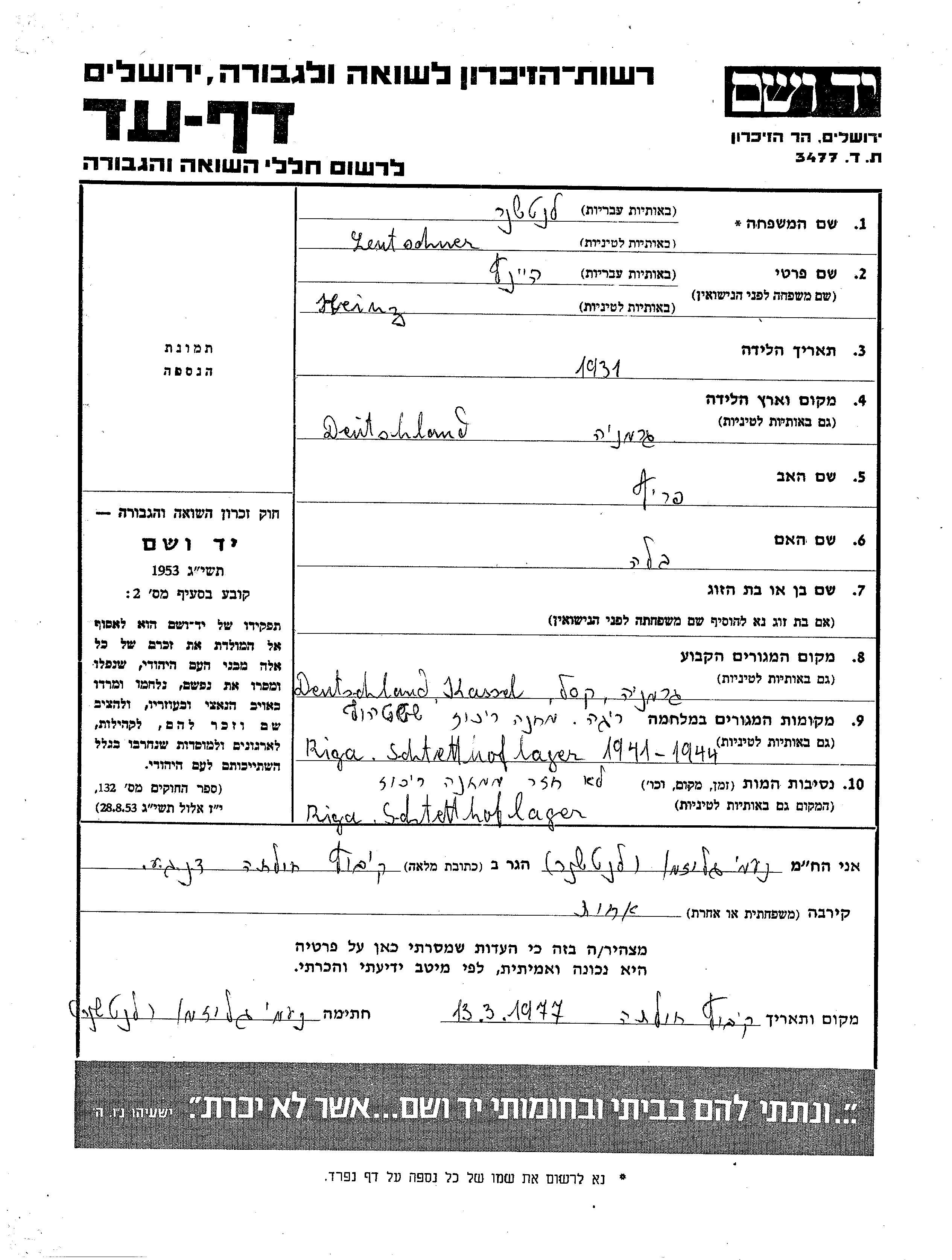 Heinz wurde in der Schoah ermordet. Todesort: Riga, Lettland.