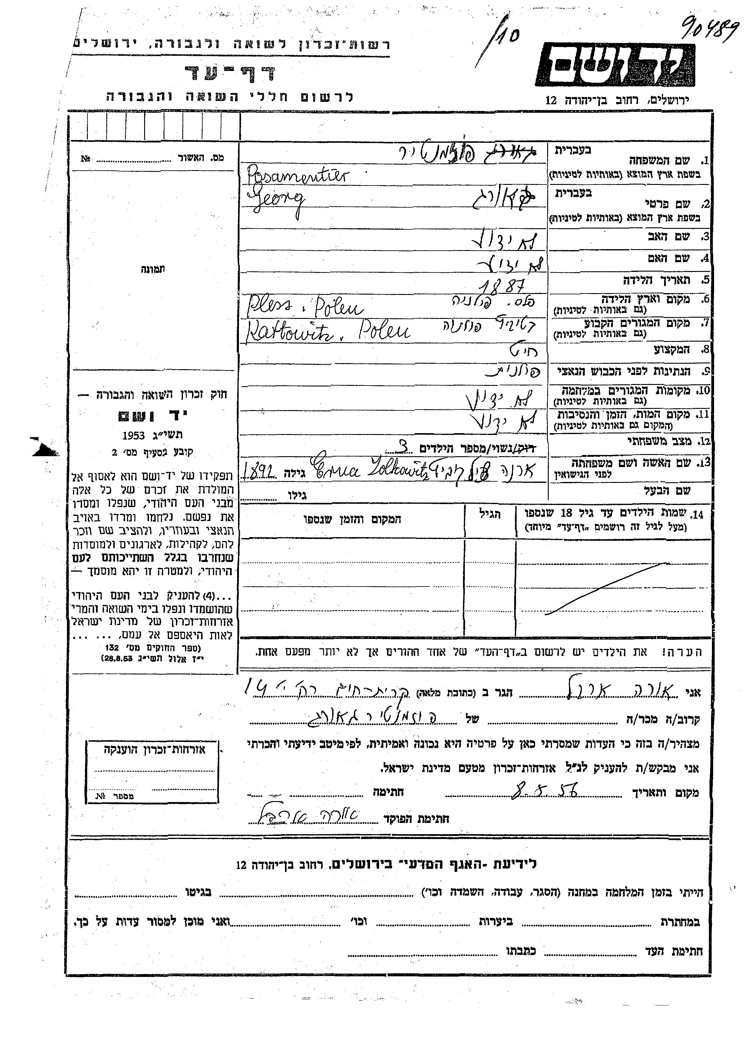 Georg Posamentier Pozmantir wurde im Jahr 1887 in Pless, Polen geboren. Er war Schneider und mit Erna, geb. Zolkowitz Verheiratet. Vor dem Zweiten Weltkrieg lebte er in Katowitz, Polen.