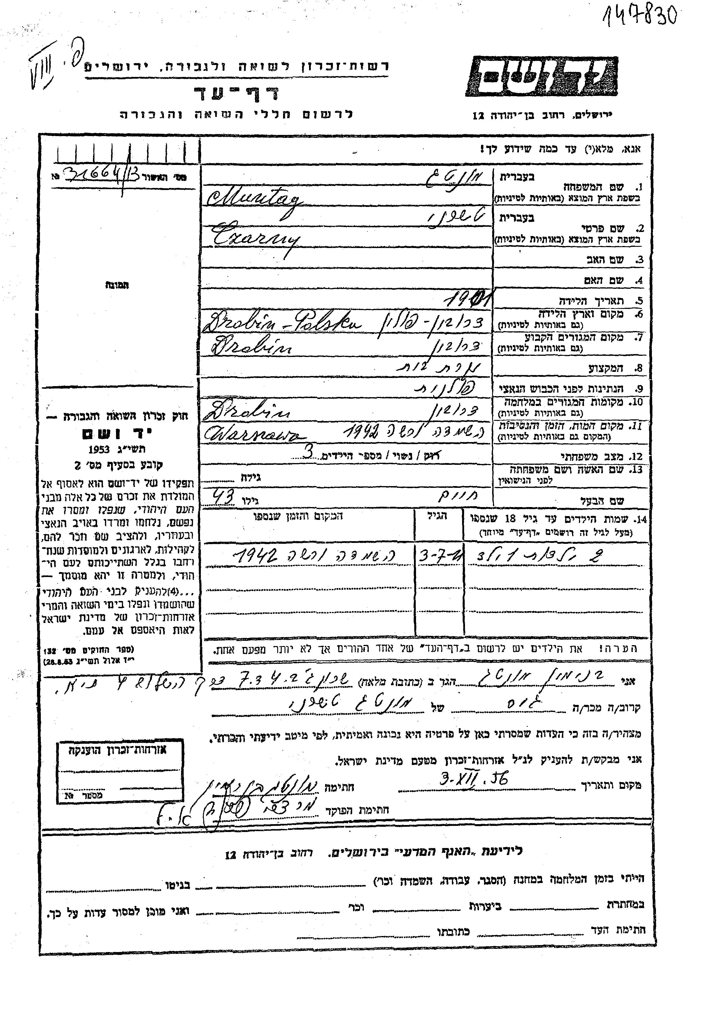 Czarny wurde in der Schoah ermordet. Todesort: Varsha, Polen im Jahr 1942.