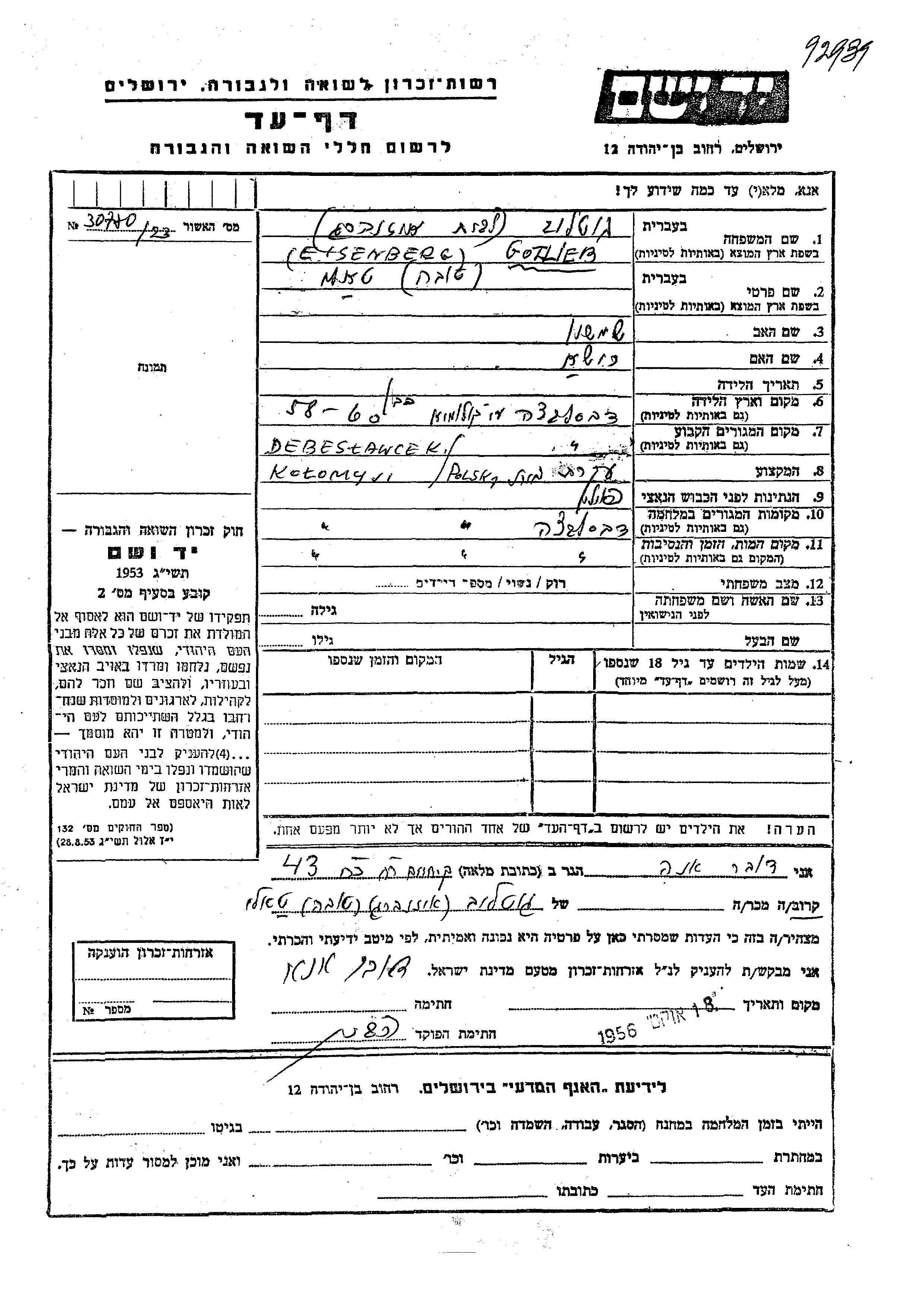 Gotlieb Tova Toli Debeslawce, Polen Gedenkblatt