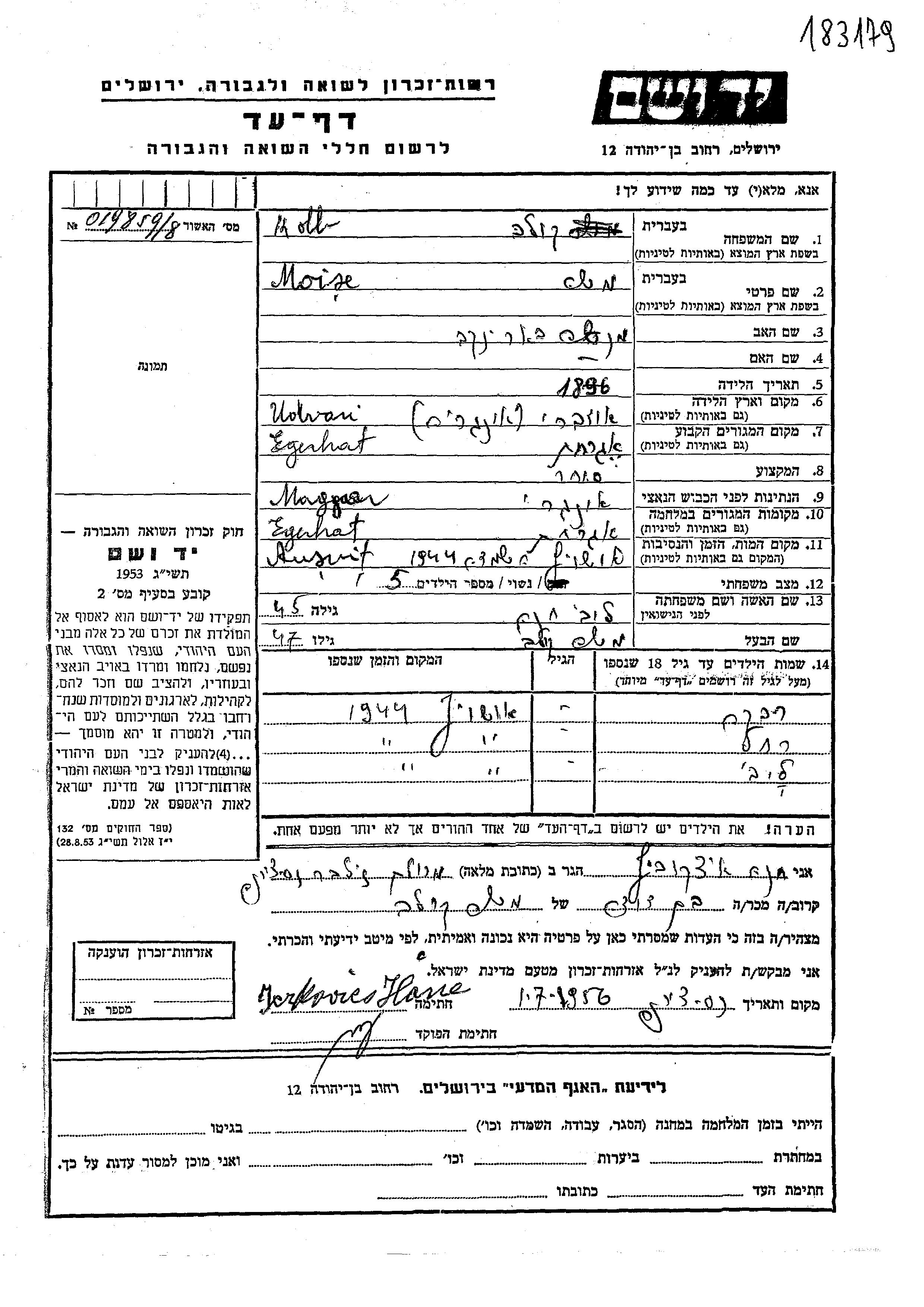 Moise wurde in der Schoah ermordet. Todesort: Auschwitz, Polen im Jahr 1944.