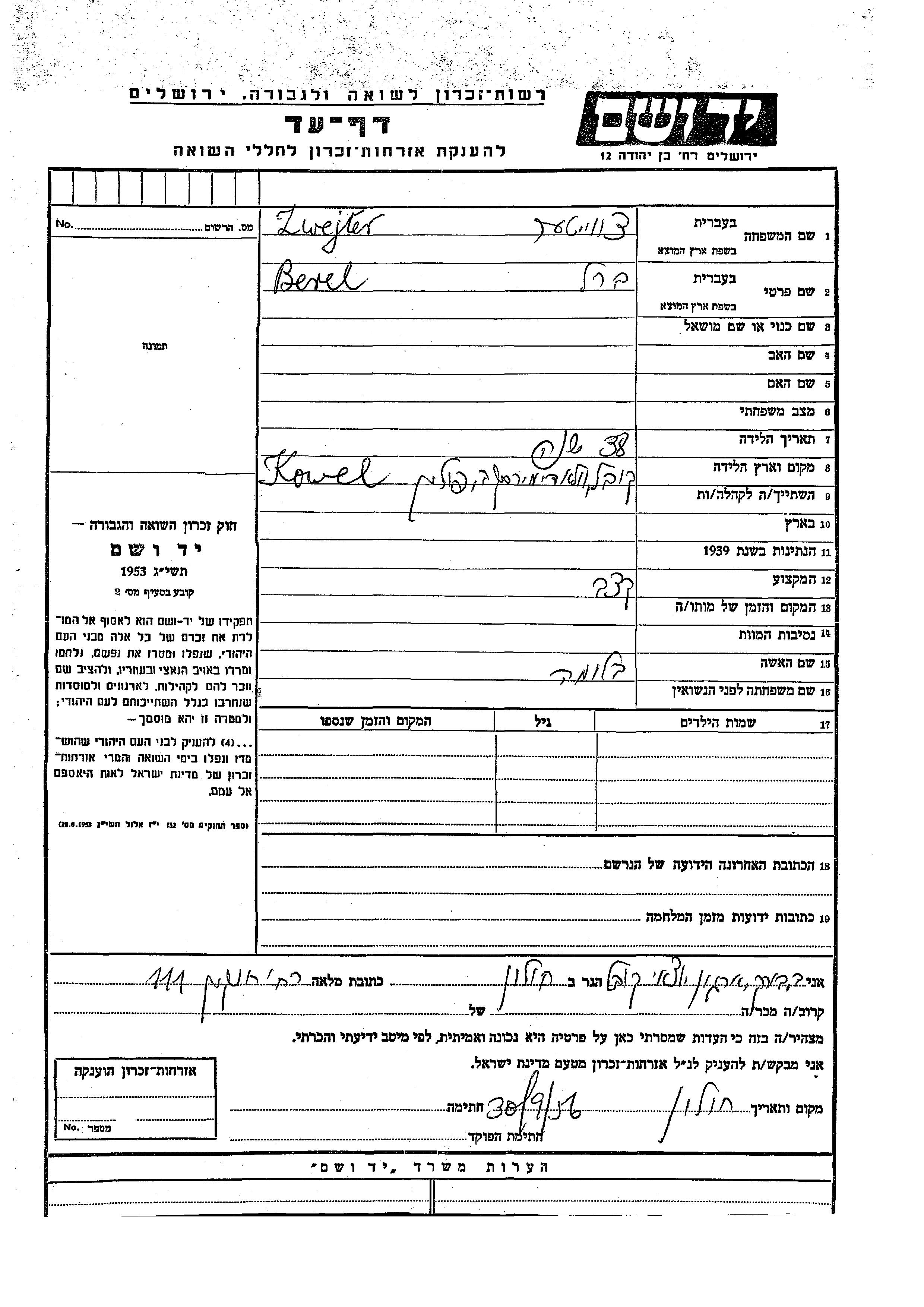 Berl Zwejter wurde in Kowel, Polen geboren. Er war Metzger/-in und mit Bluma Verheiratet.