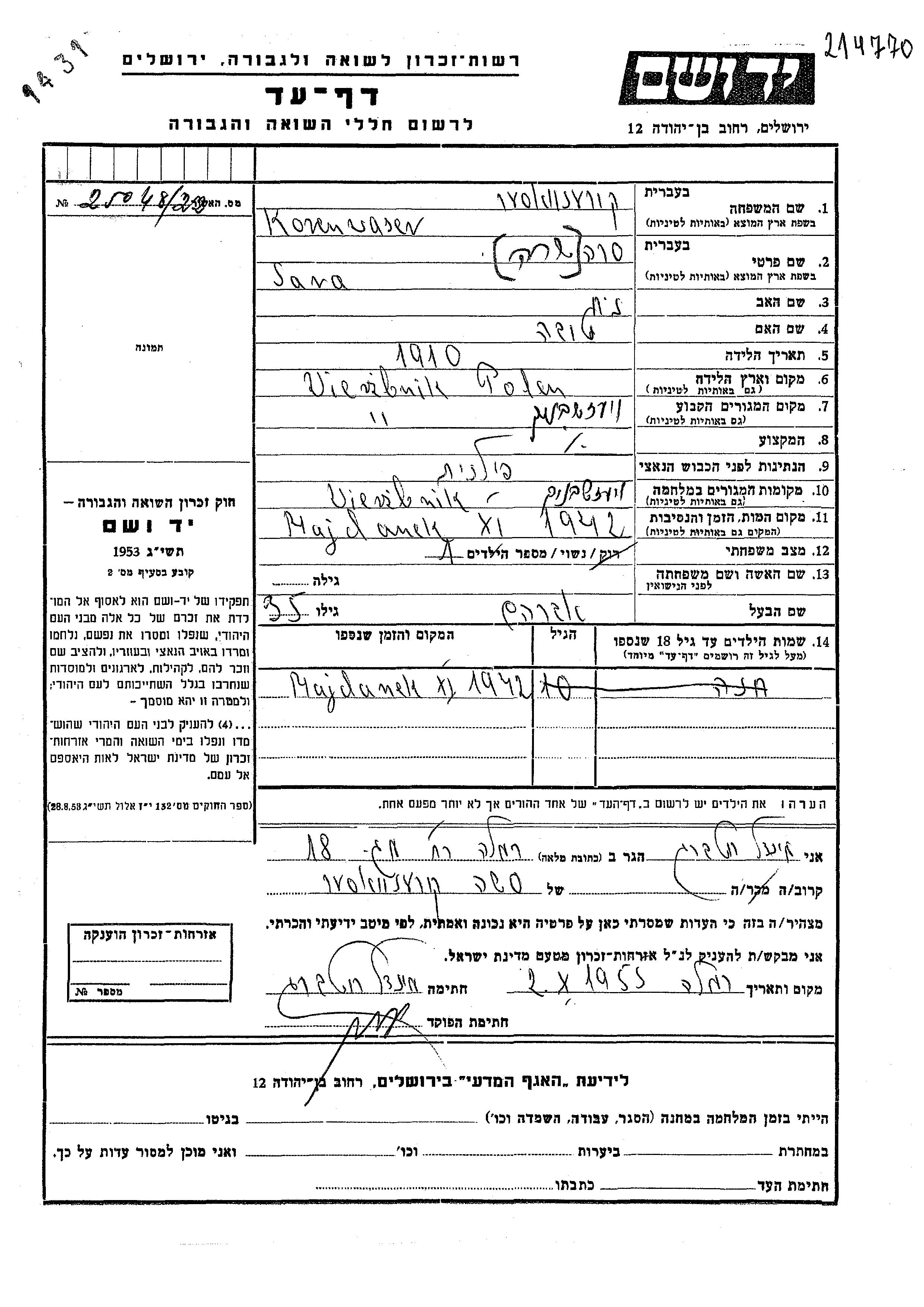 Sara wurde in der Schoah ermordet. Todesort: Majdanek, Polen im Jahr 1942.
