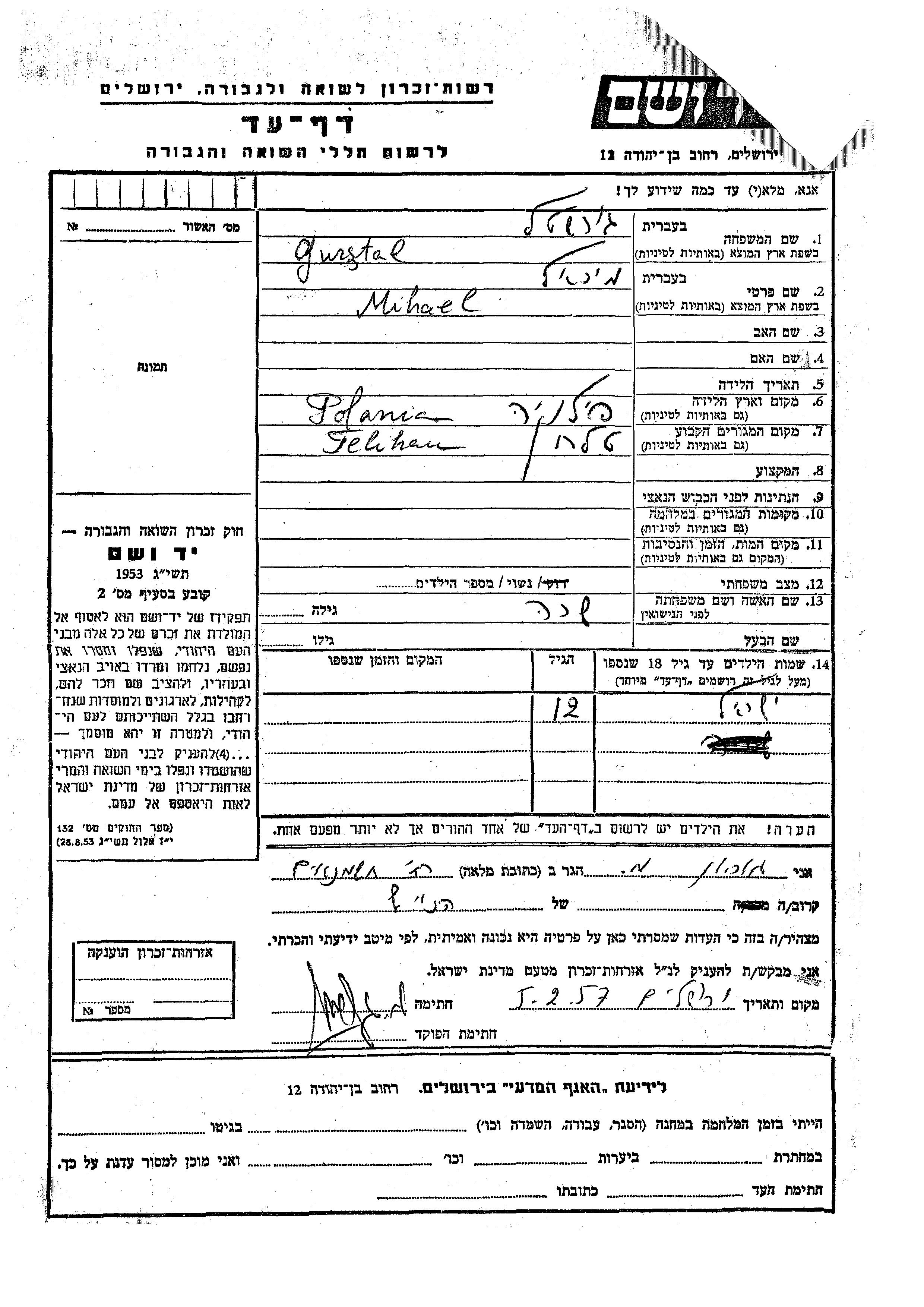 Mihael Gurstal wurde in Polen geboren. Er war mit Sara Verheiratet. Vor dem Zweiten Weltkrieg lebte er in Telchan, Polen.