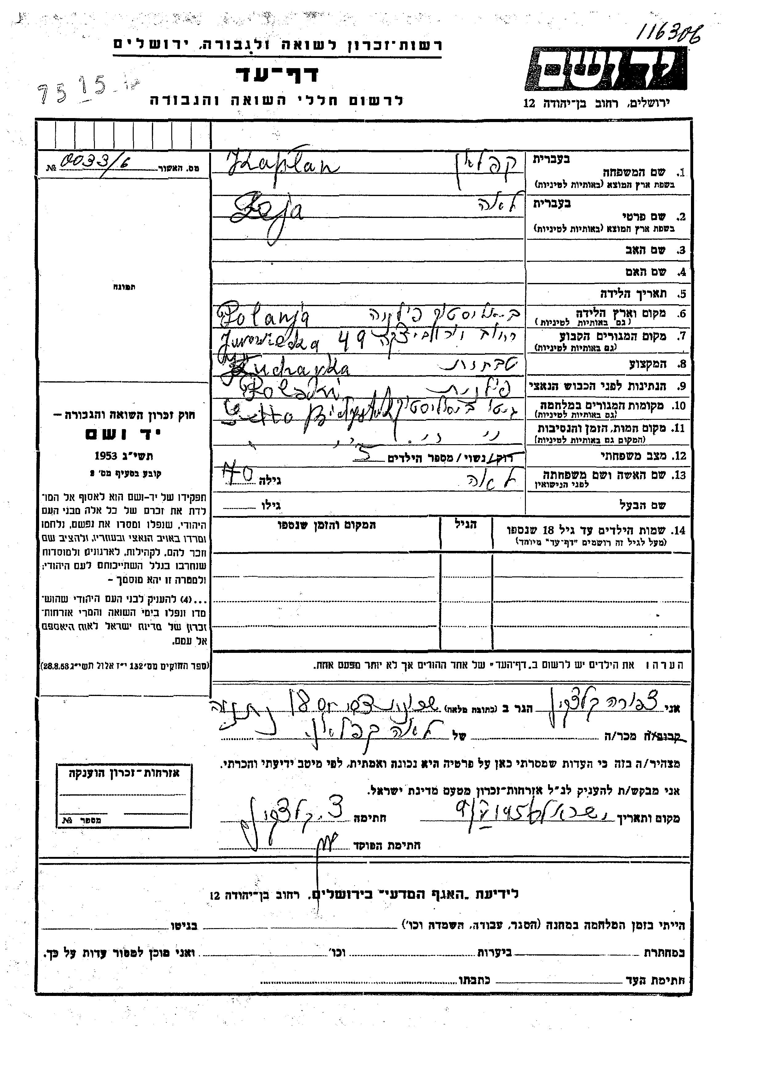 Leja wurde in der Schoah ermordet. Todesort: Bialistok, Polen.