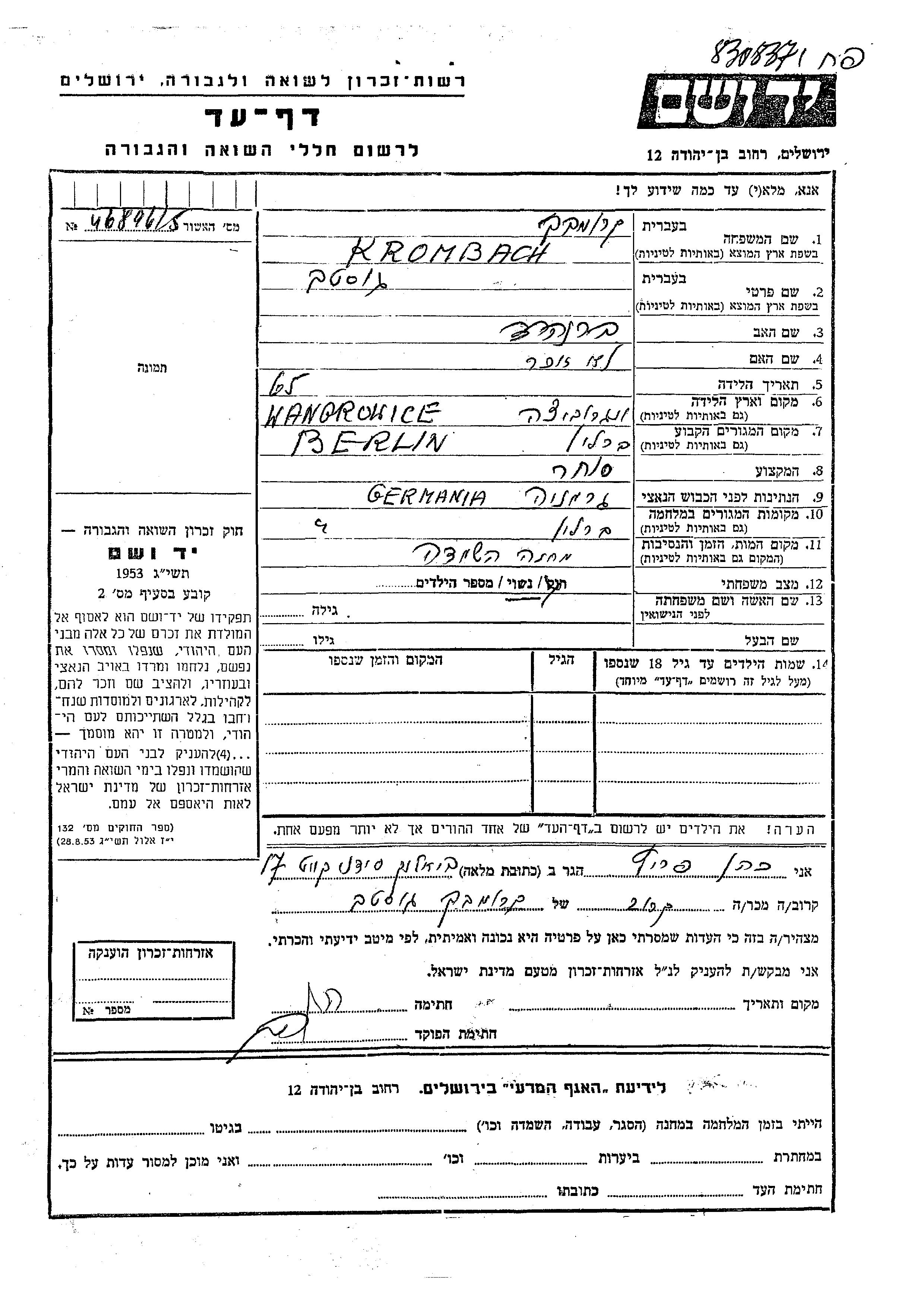 Gustav Krombach wurde in Wagrowiec, Polen geboren. Er war der Sohn von Bernhard. Er war Kaufmann/-frau und Verheiratet. Vor dem Zweiten Weltkrieg lebte er in Berlin, Deutsches Reich. Während des Krieges war er in Berlin, Deutsches Reich.