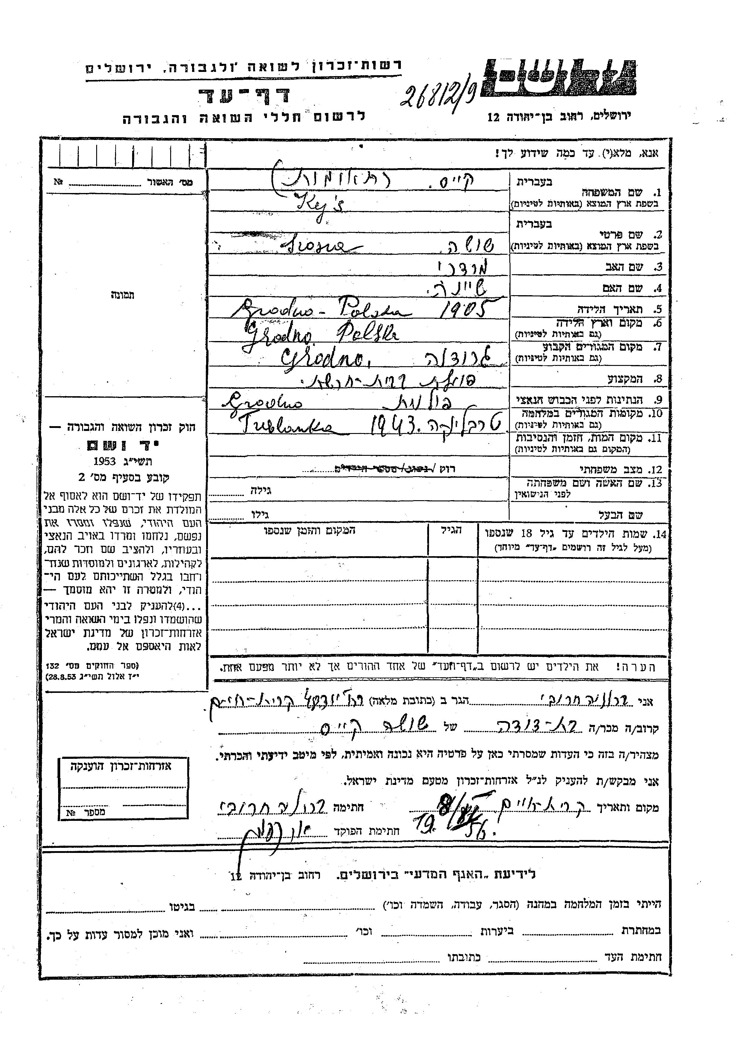 Szosze Kejs wurde im Jahr 1905 in Grodno, Polen geboren. Sie war die Tochter von Mordekhai und Sheina. Sie war Fabrikarbeiter / fabrikarbeiterin und Ledig. Vor dem Zweiten Weltkrieg lebte sie in Grodno, Polen. Während des Krieges war sie in Treblinka, Polen.