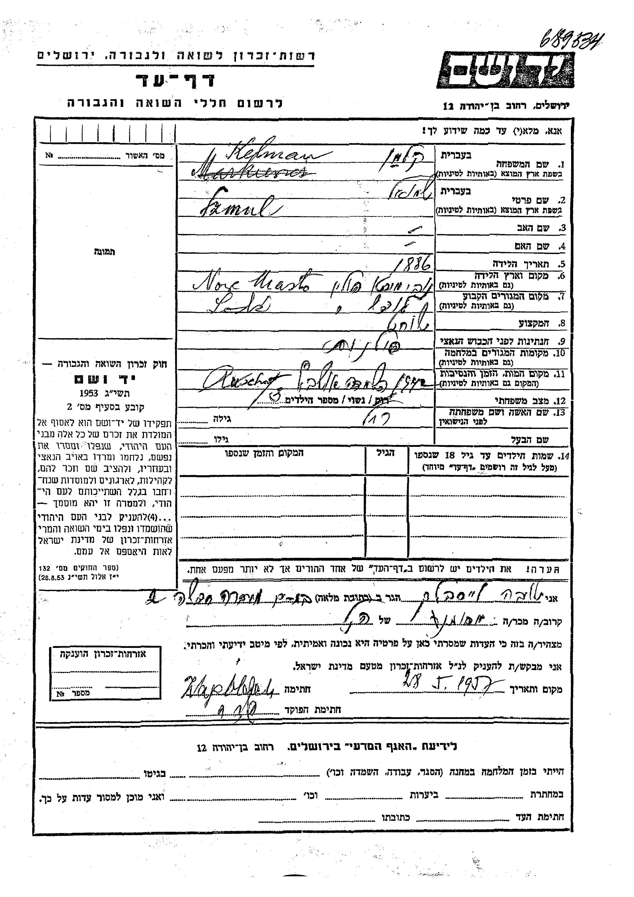 Szmul Kalman wurde im Jahr 1886 in Nowe Miasto, Polen geboren. Er war Schächter und mit Rakhel Verheiratet. Vor dem Zweiten Weltkrieg lebte er in Lodz, Polen.