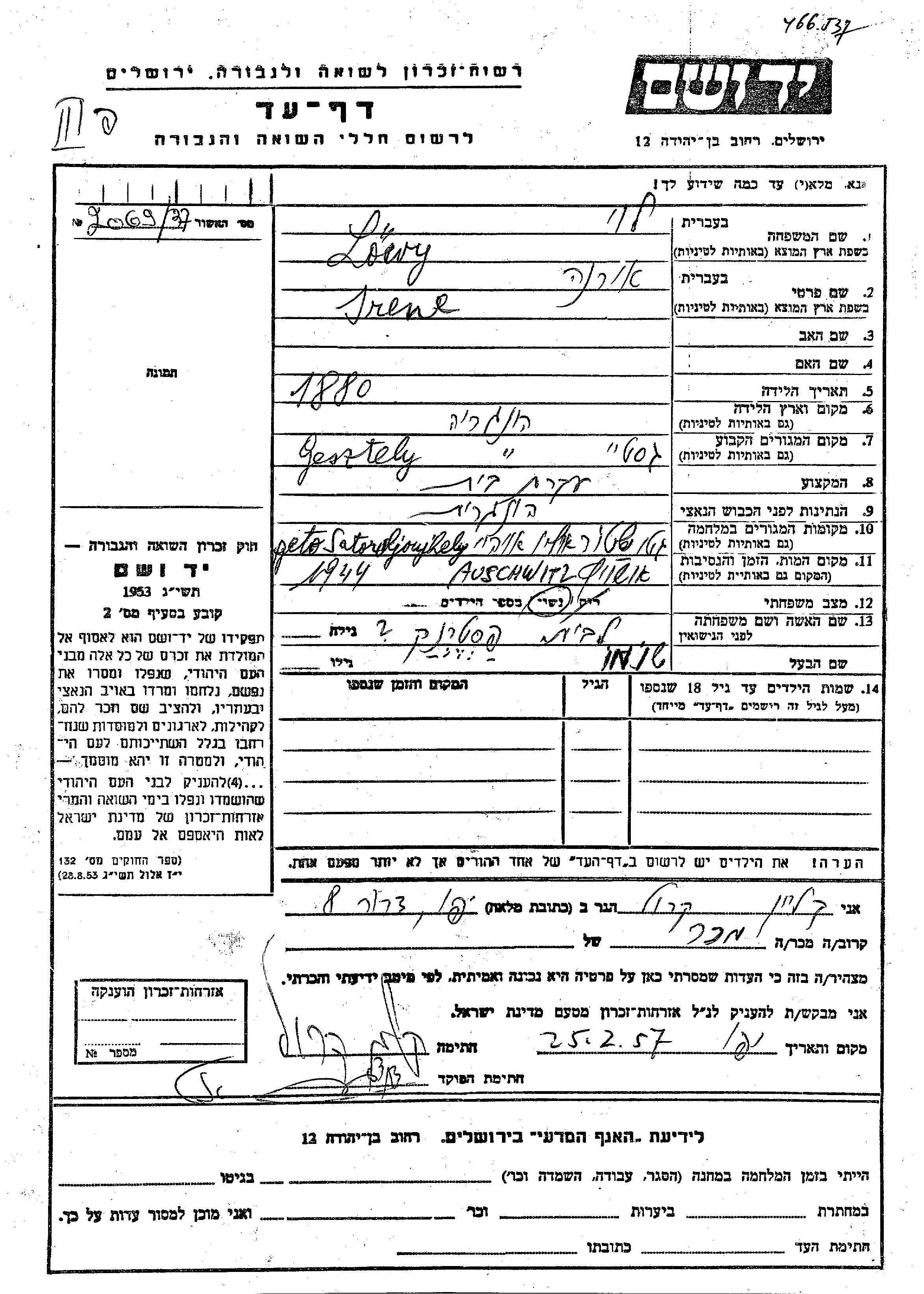 Jrene wurde in der Schoah ermordet. Todesort: Auschwitz, Polen im Jahr 1944.