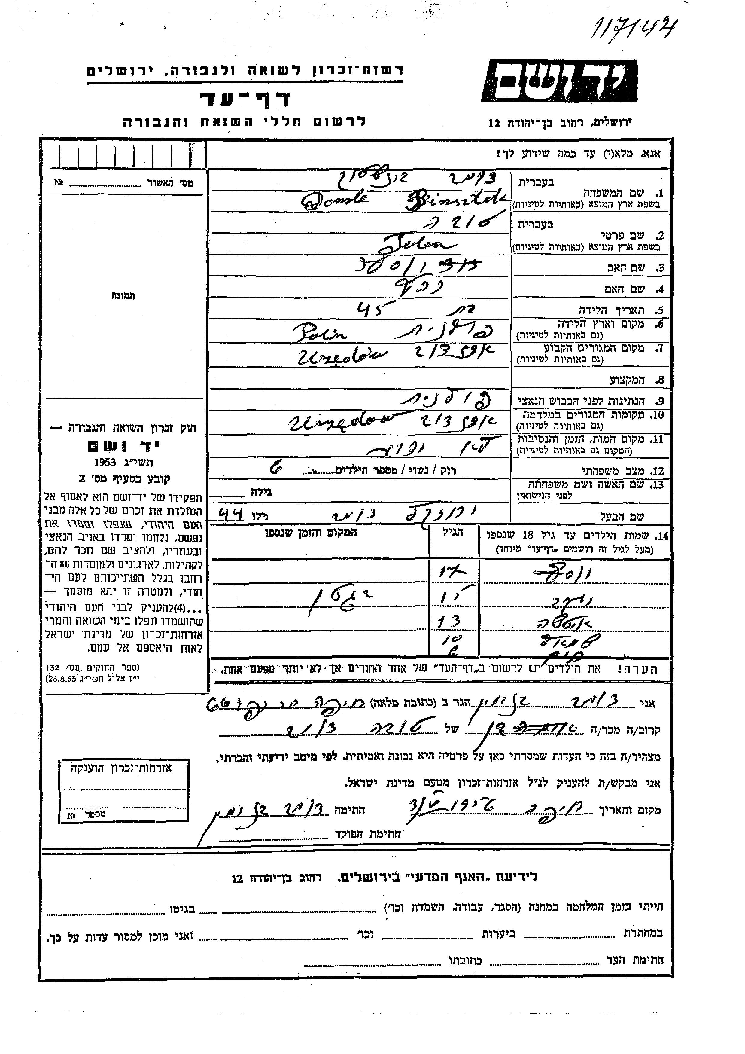 Tuba Tova Binsztok Domb, geb. Binsztok wurde in Polen geboren. Sie war die Tochter von Yosef und Rakhel. Sie war mit Yekhezkel Verheiratet. Vor dem Zweiten Weltkrieg lebte sie in Urzedow, Polen. Während des Krieges war sie in Urzedow, Polen.