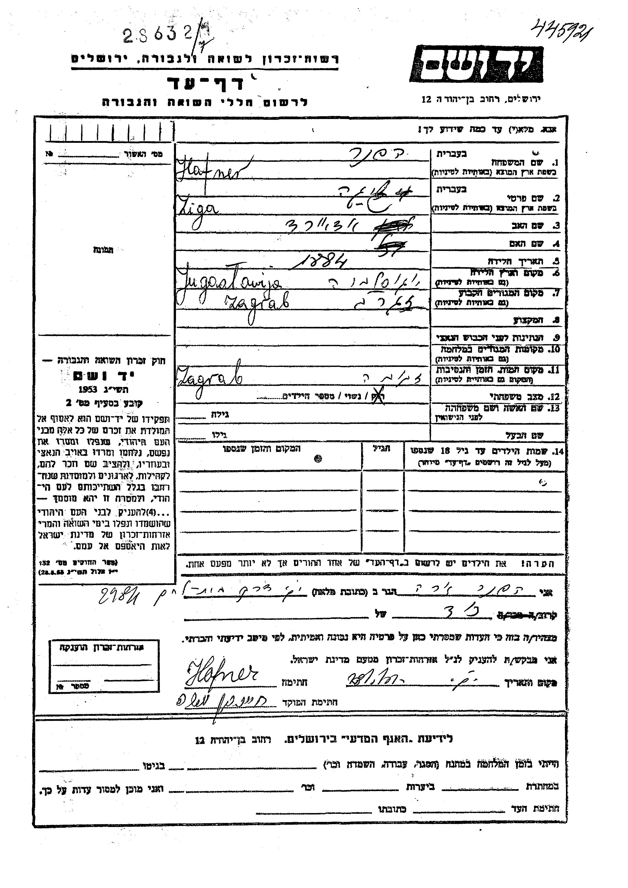 Ziga wurde in der Schoah ermordet. Todesort: Zagrab, Jugoslawien.